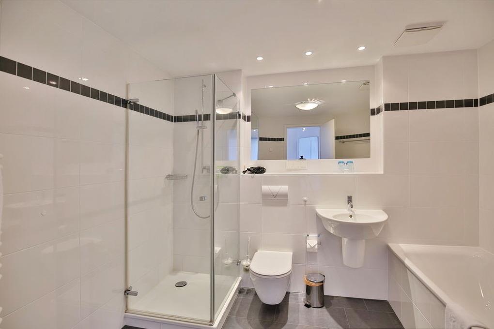 Badeværelse med bruser og badekar