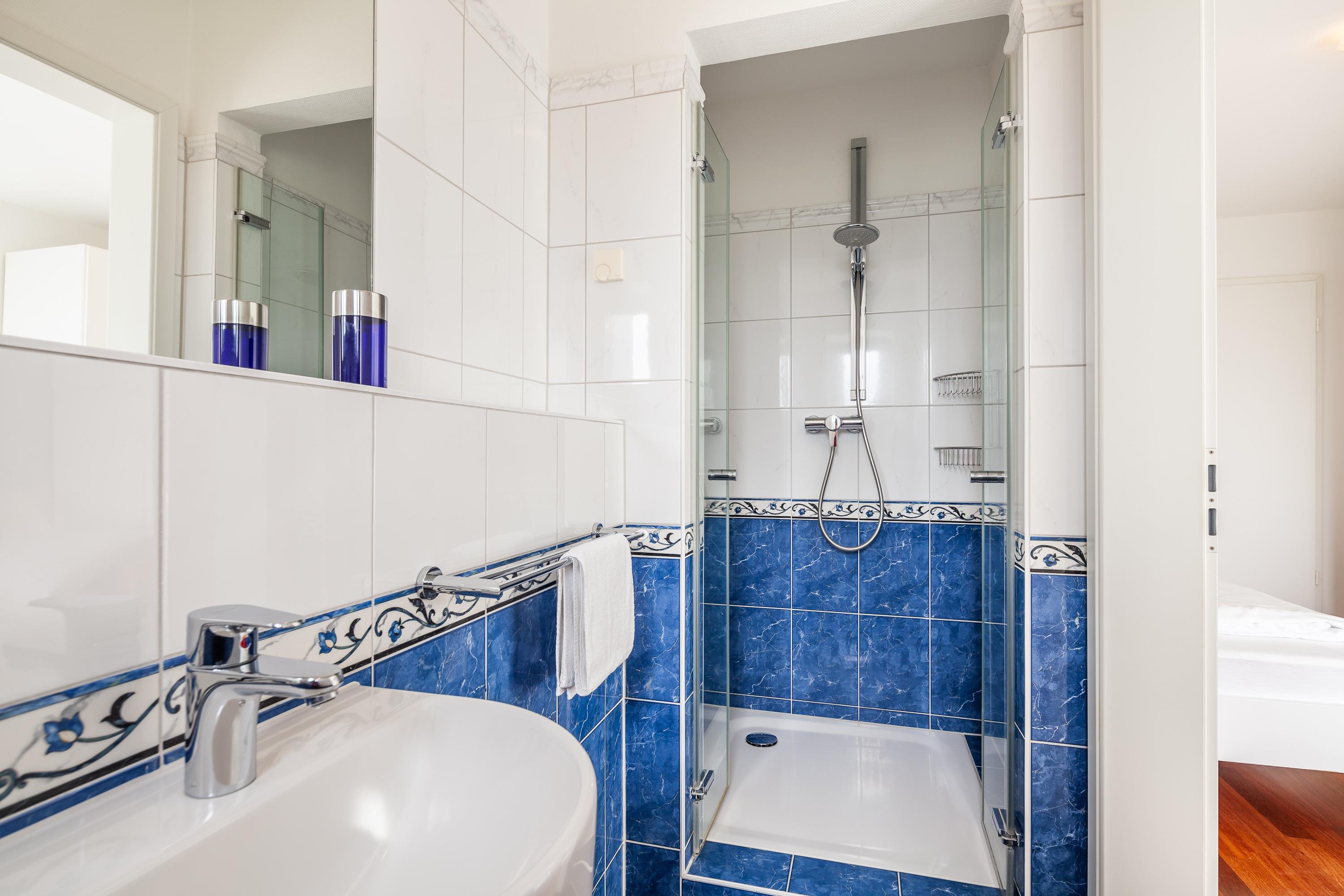 Badeværelse med bruser og badekar