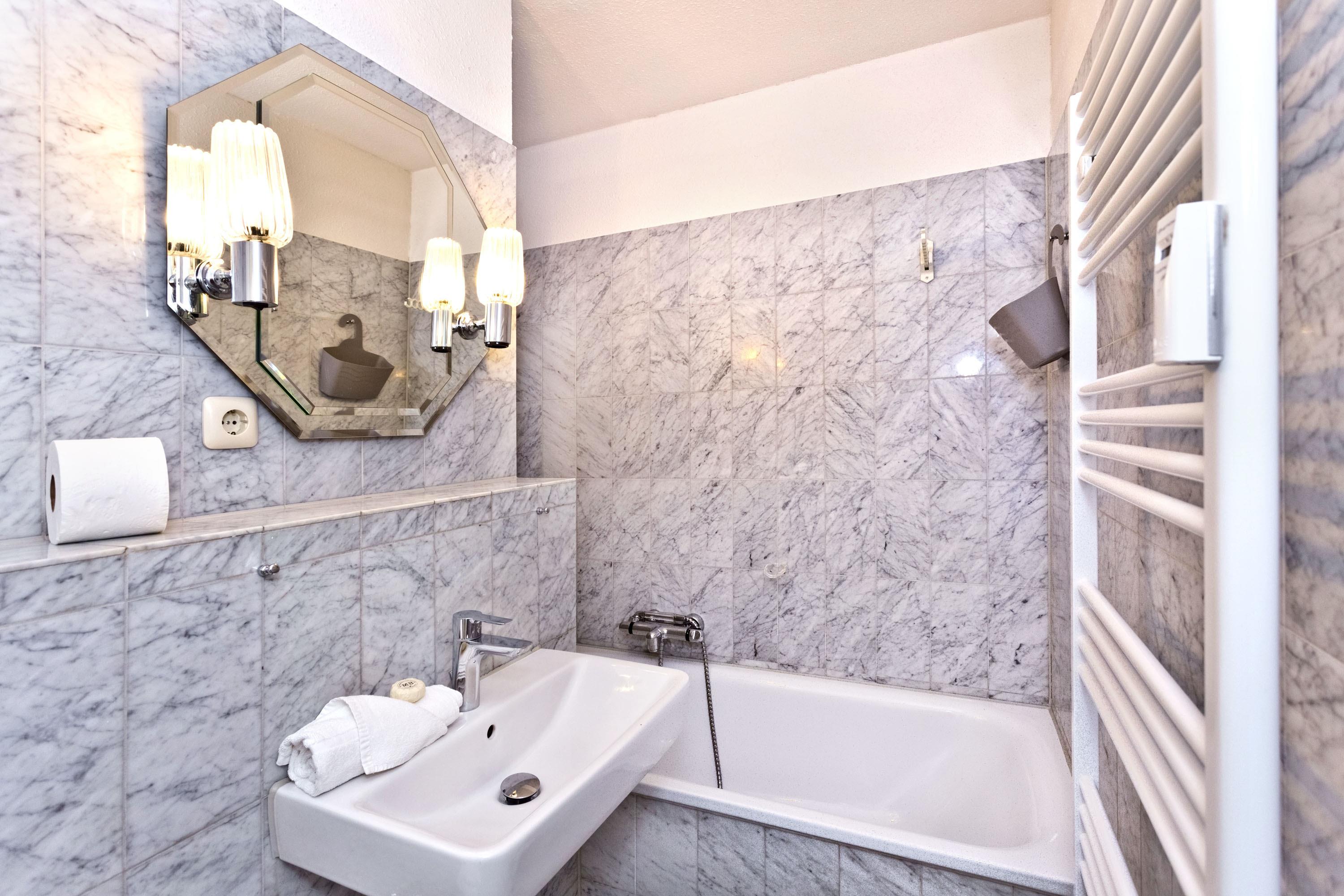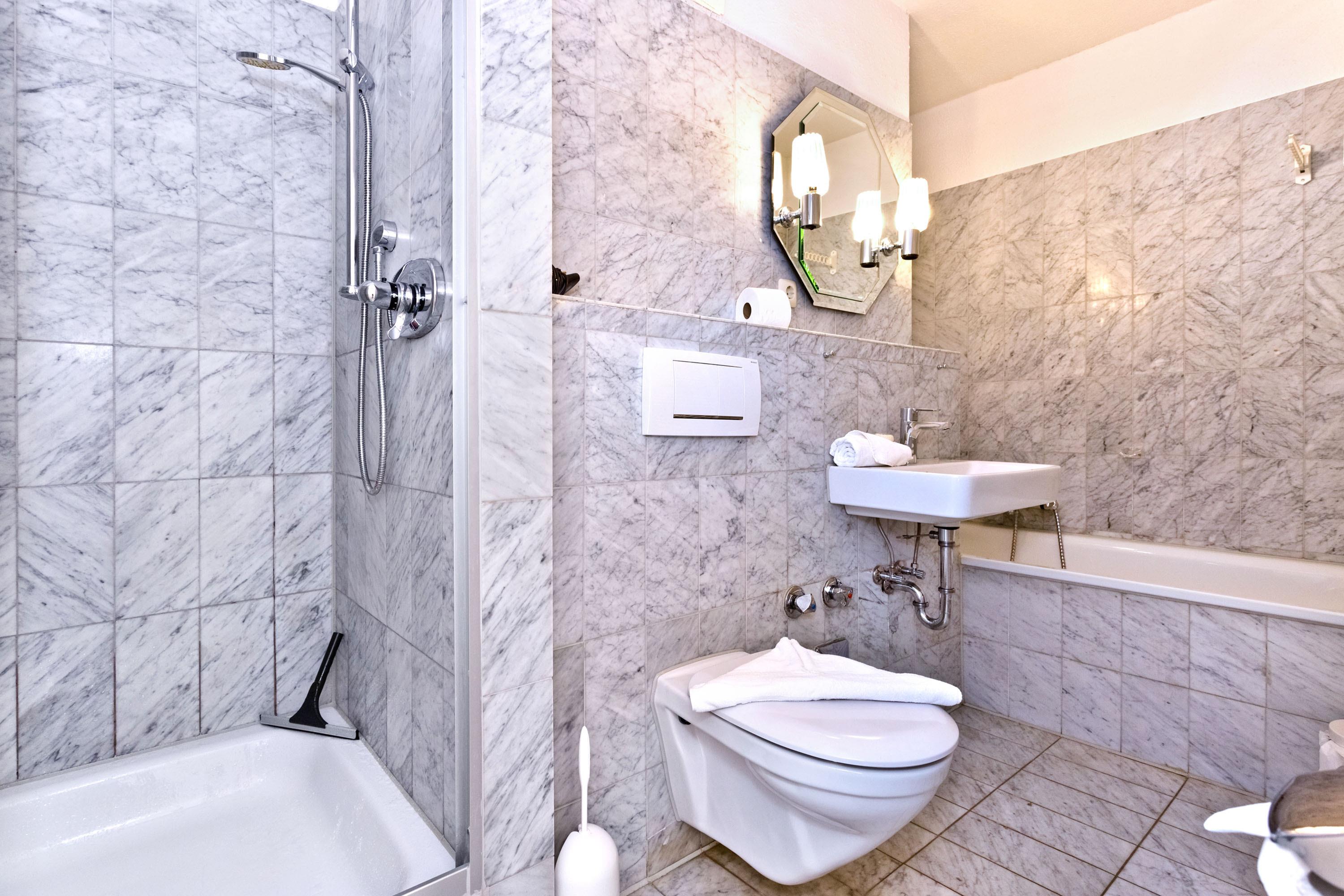 Badeværelse med bruser og badekar