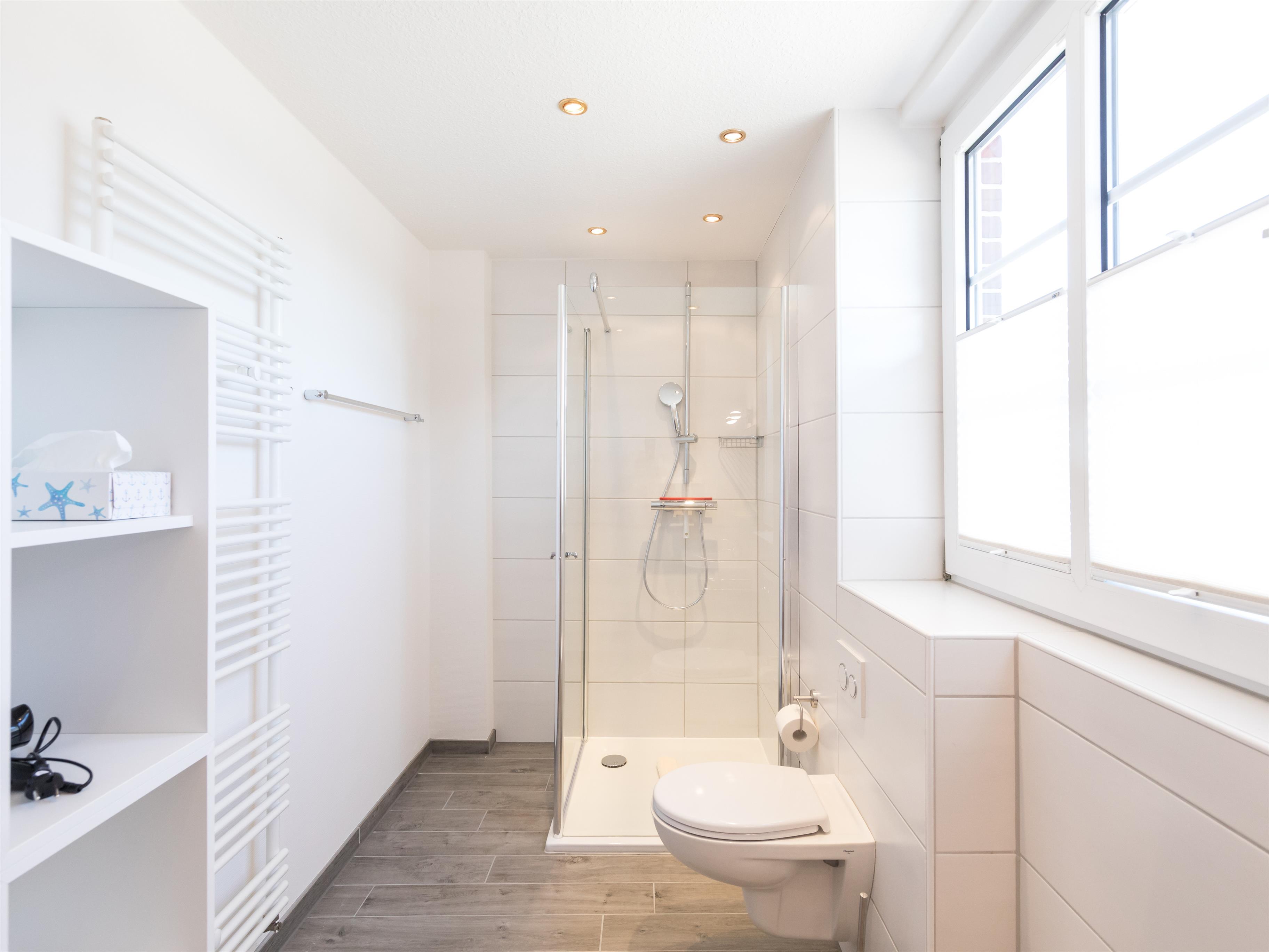 Im Schlafzimmer mit Boxspringbetten haben Sie nicht nur einen tollen Blick auf den Marinahafen sondern auch sehr gute Staukapazitäten. Das Badezimmer verfügt über eine große Dusche und ist gut ausgestattet. Der Wohn- und Essbereich ist für 4 Personen eingerichtet und bietet mit dem Schlafsofa zwei weiteren Personen eine komfortable Schlafmöglichkeit. Kinderhochstuhl und Kinderbett (Hauck) stehen kostenlos zur Verfügung. Im Flur zum Eingang der Wohnung steht Ihnen noch ein weiteres Bad in Form eines Gäste/WC zur Verfügung. Auch eine Waschmaschine und Wäscheständer sind vorhanden.
