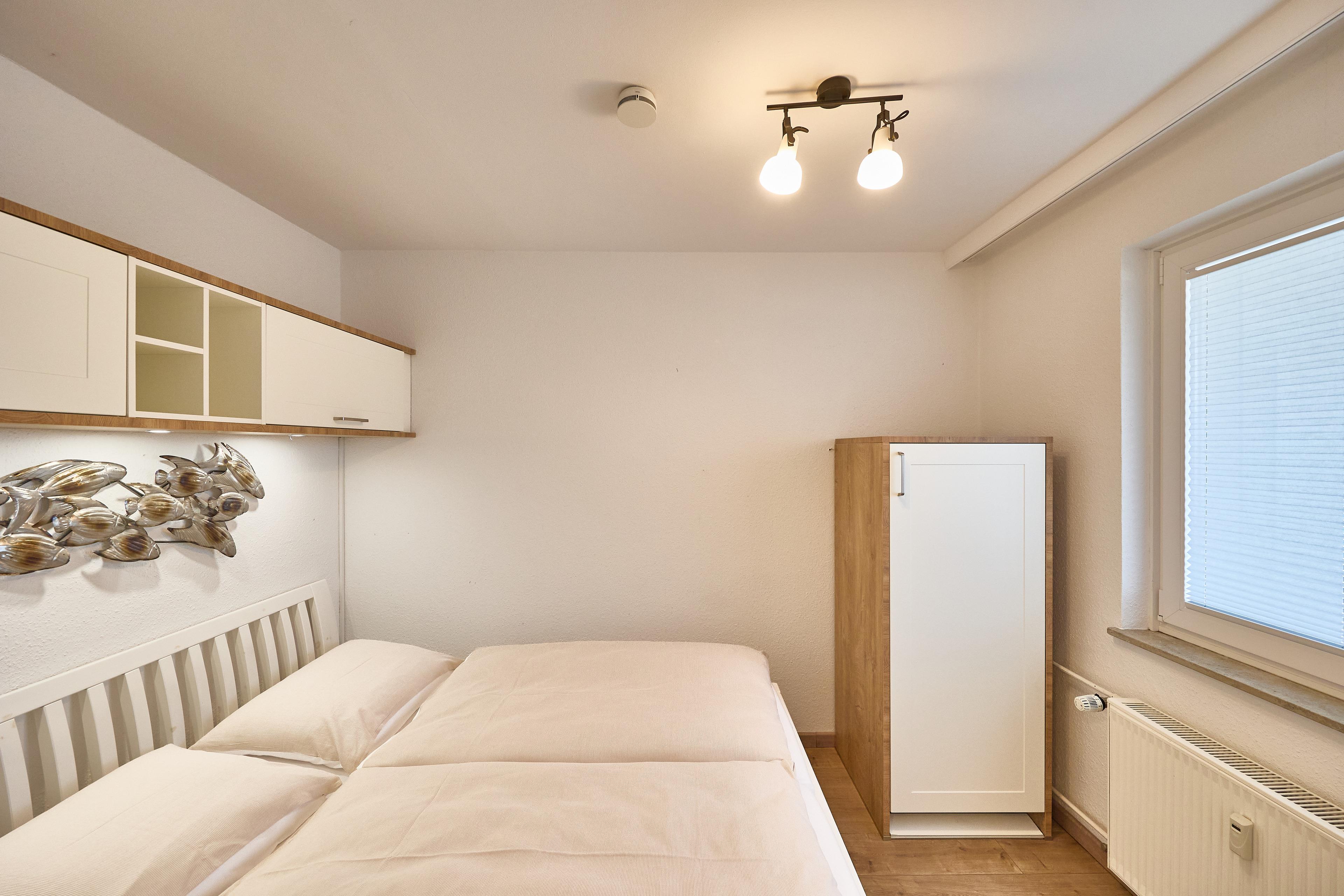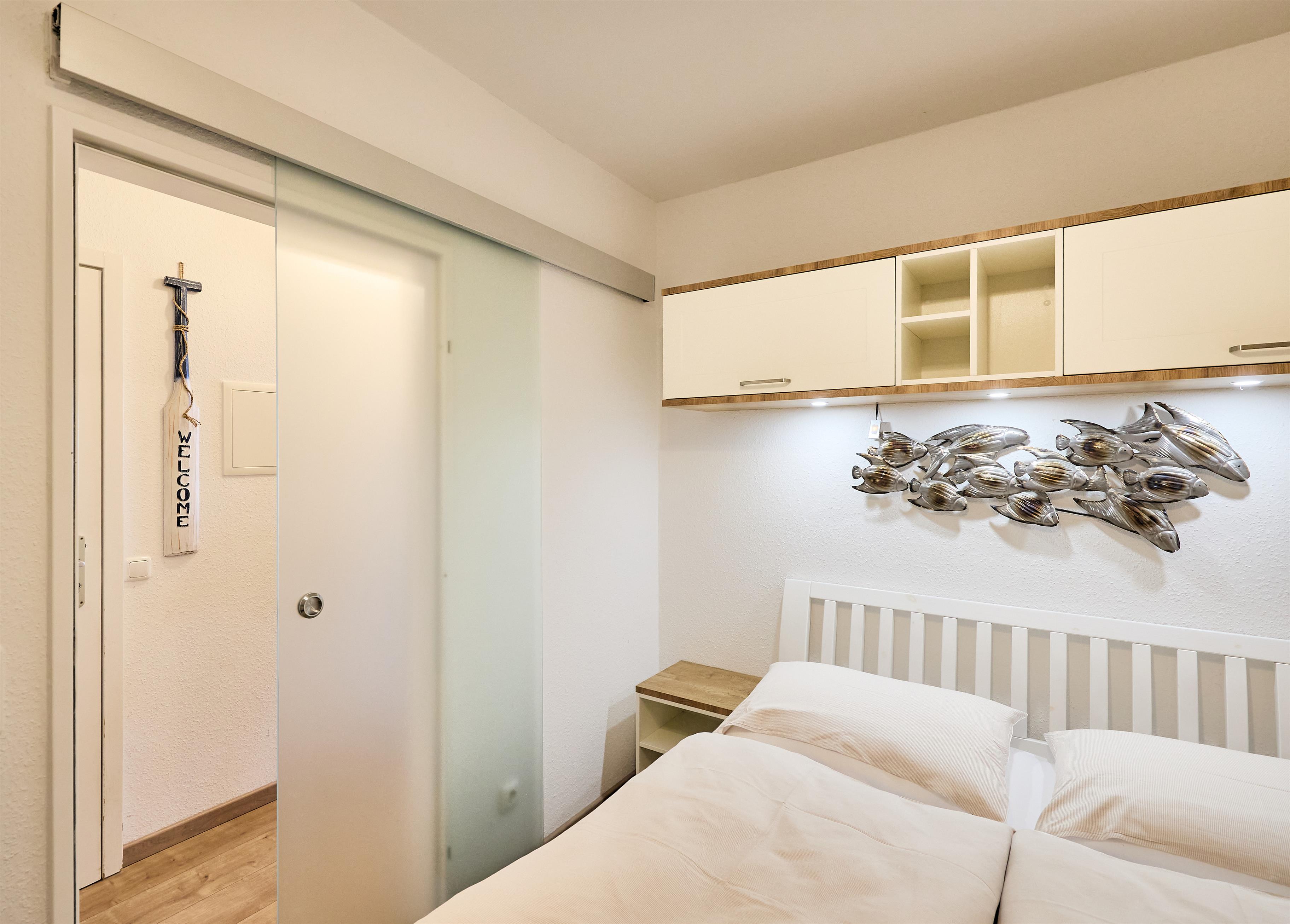 Das separate Schlafzimmer ermöglicht erholsamen Schlaf und bietet ausreichend Stauraum für Gepäck.