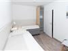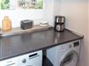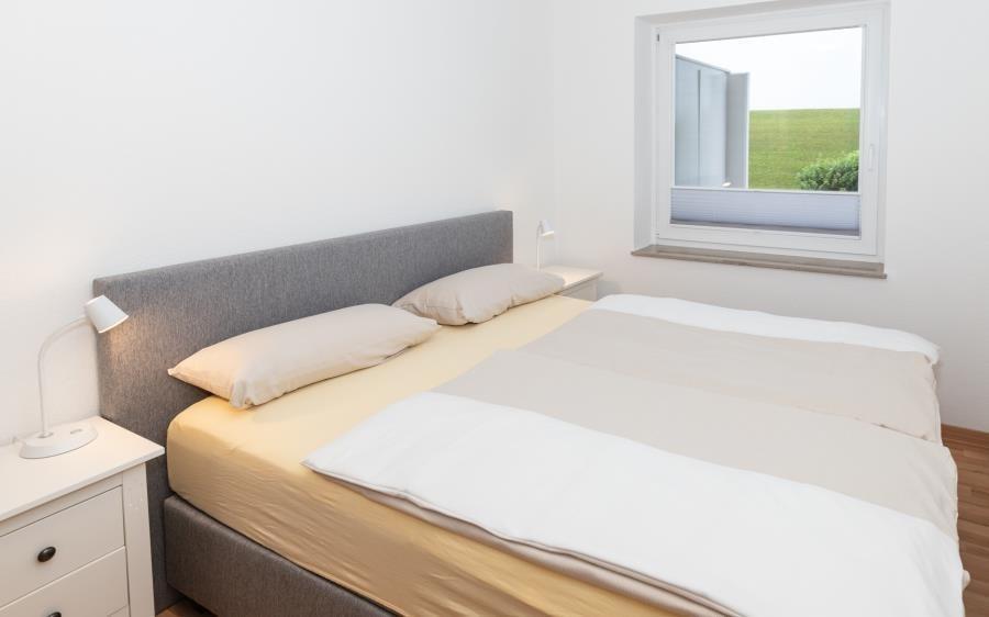 Die beiden Schlafbereiche sind jeweils mit Ablagemöglichkeiten zum hängen und legen eingerichtet und die bequemen Boxspringbetten, in beiden Schlafbereichen, werten den Komfort dieser Wohnung auf. Der 2. Schlafbereich hat auch einen kleinen Schreibtisch, wo Sie einen Urlaubsgruß schreiben oder auch ein wenig Homeoffice machen können. Das hellgeflieste Duschbad mit WC mit Ablagen erreichen Sie direkt vom Flur aus. Hier befindet sich auch ein Schuhschrank und die Garderobe.