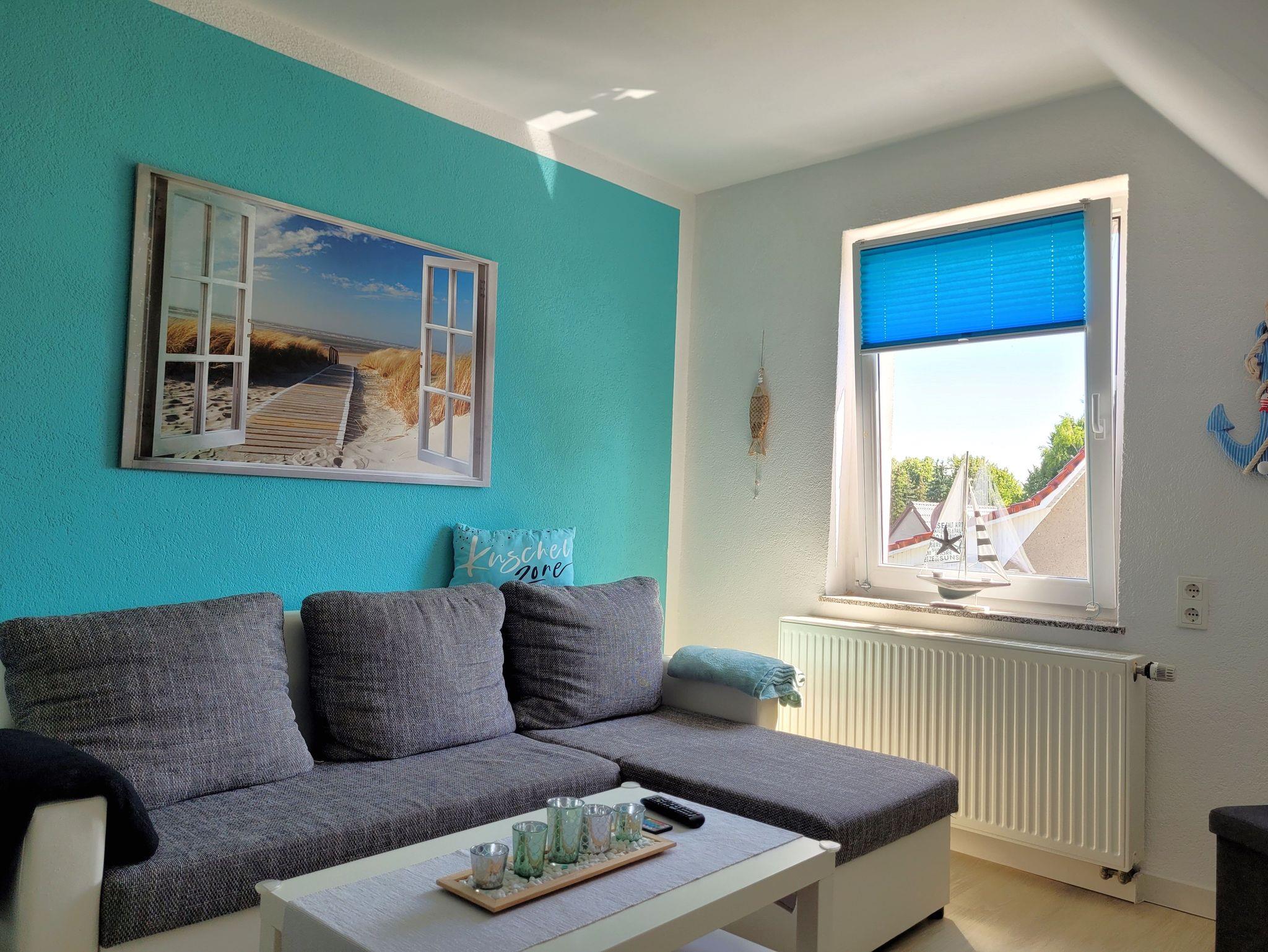 Die modern eingerichtete Ferienwohnung mit 56m² ist mit einem Schlafzimmer mit Doppelbett, einem Wohnzimmer (mit Schlafsofa 1,40 x 2,00), einer separaten Küche und einem Badezimmer mit Dusche/WC ausgestattet.