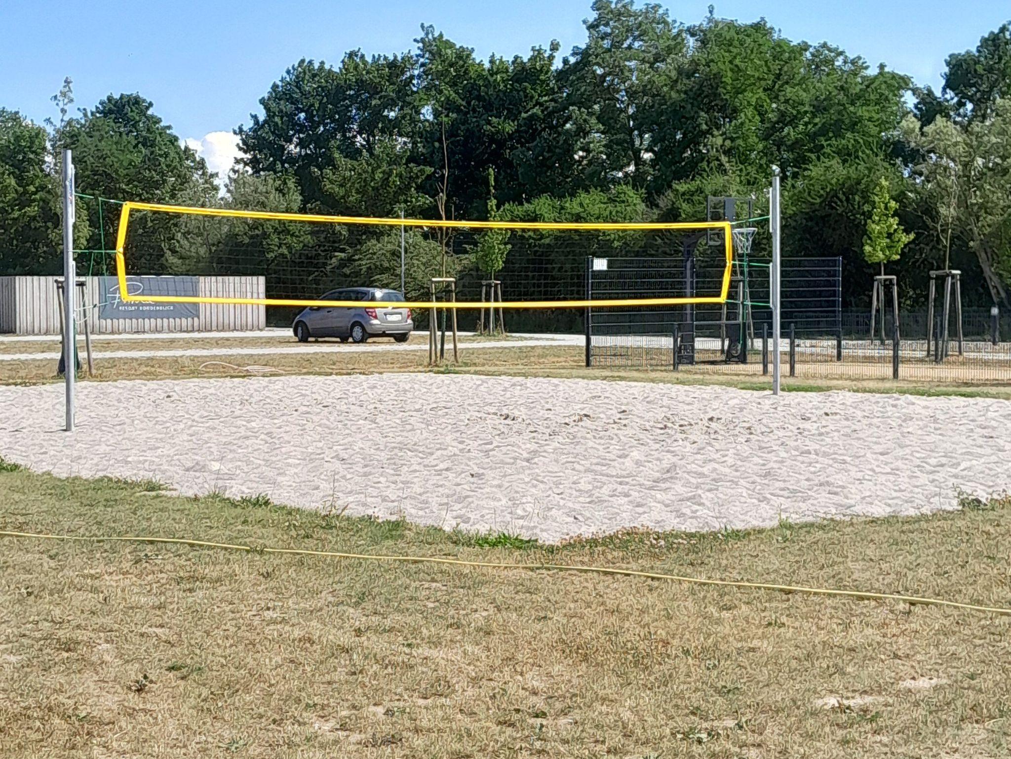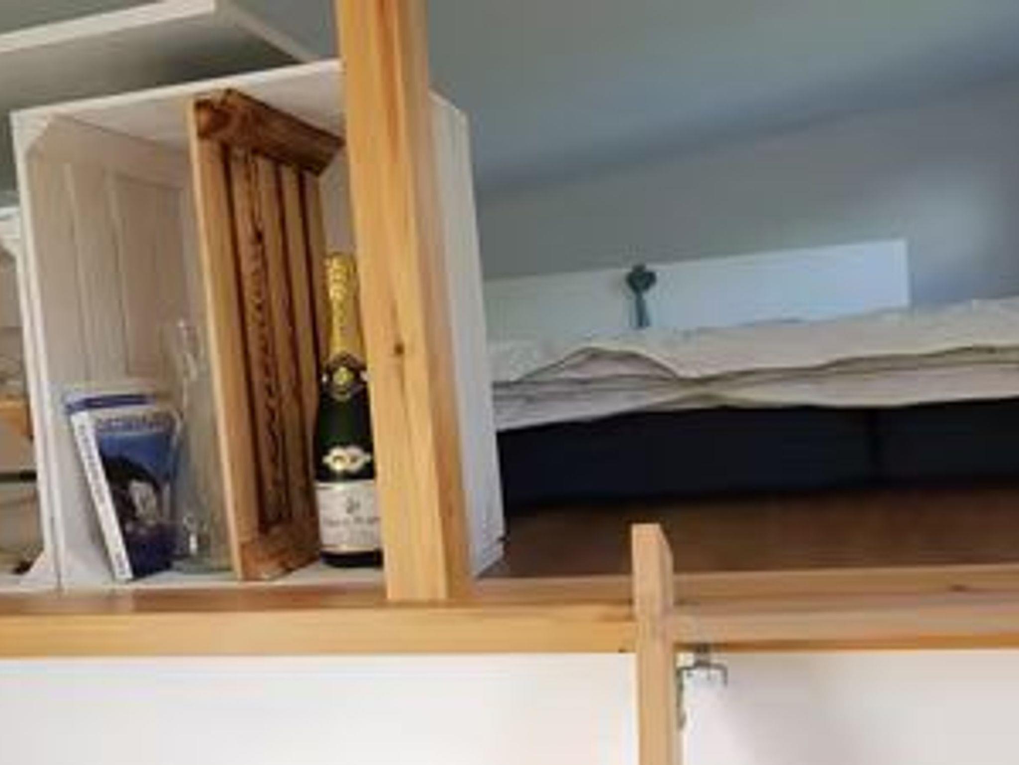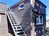Eine Empore, die über eine hohe Leiter zugänglich ist, mit zwei weiteren Klappmatratzen, ideal für Kinder im Grundschulalter.