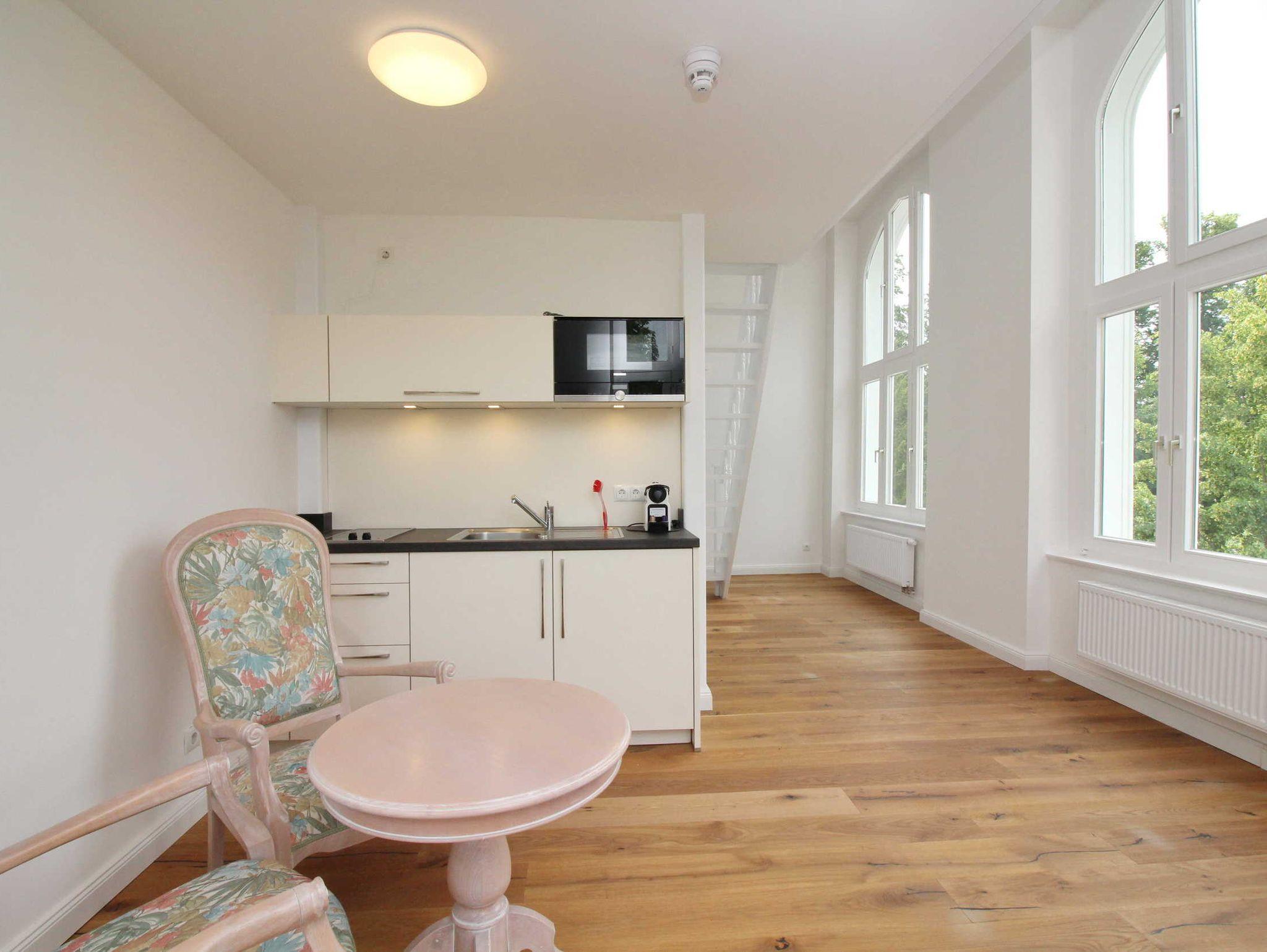 Die Schloss Apartments liegen im 1. Stock oder im Dachgeschoss mit Blick in den vorderen oder hinteren Park. Alle Apartments sind mit dem Aufzug zu erreichen. Sie sind modern-minimal oder klassisch ausgestattet und verfügen über eine moderne Küche mit Nespresso Kapselkaffeemaschine und weiteren Küchenutensilien . Die Apartments sind sehr unterschiedlich geschnitten. Größe der Apartments beträgt zw. ca. 30 bis 47 m².