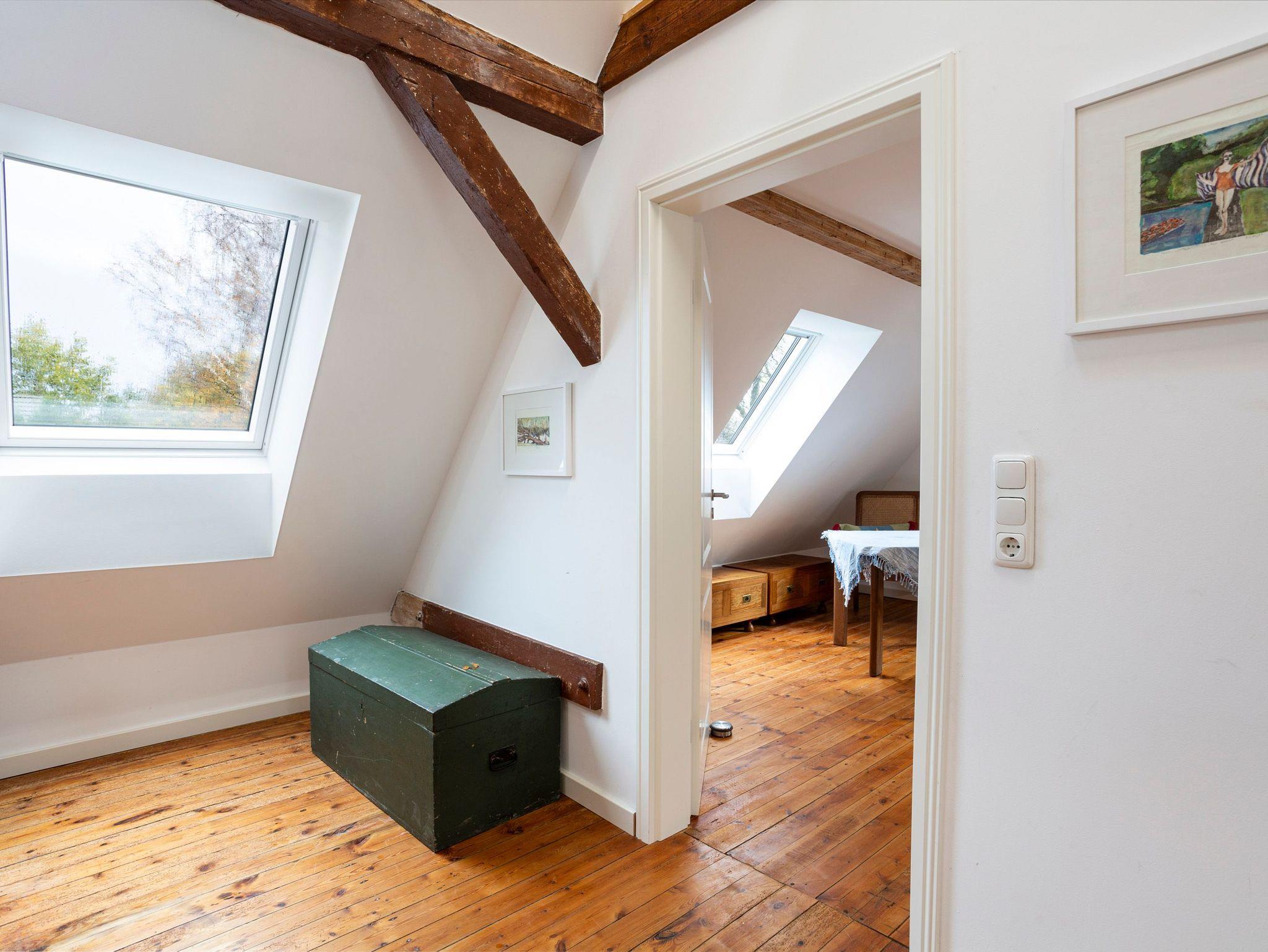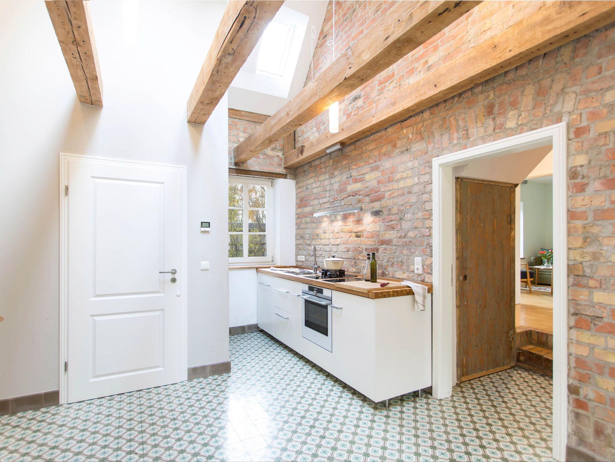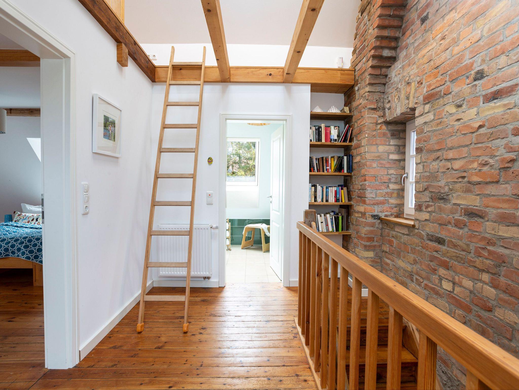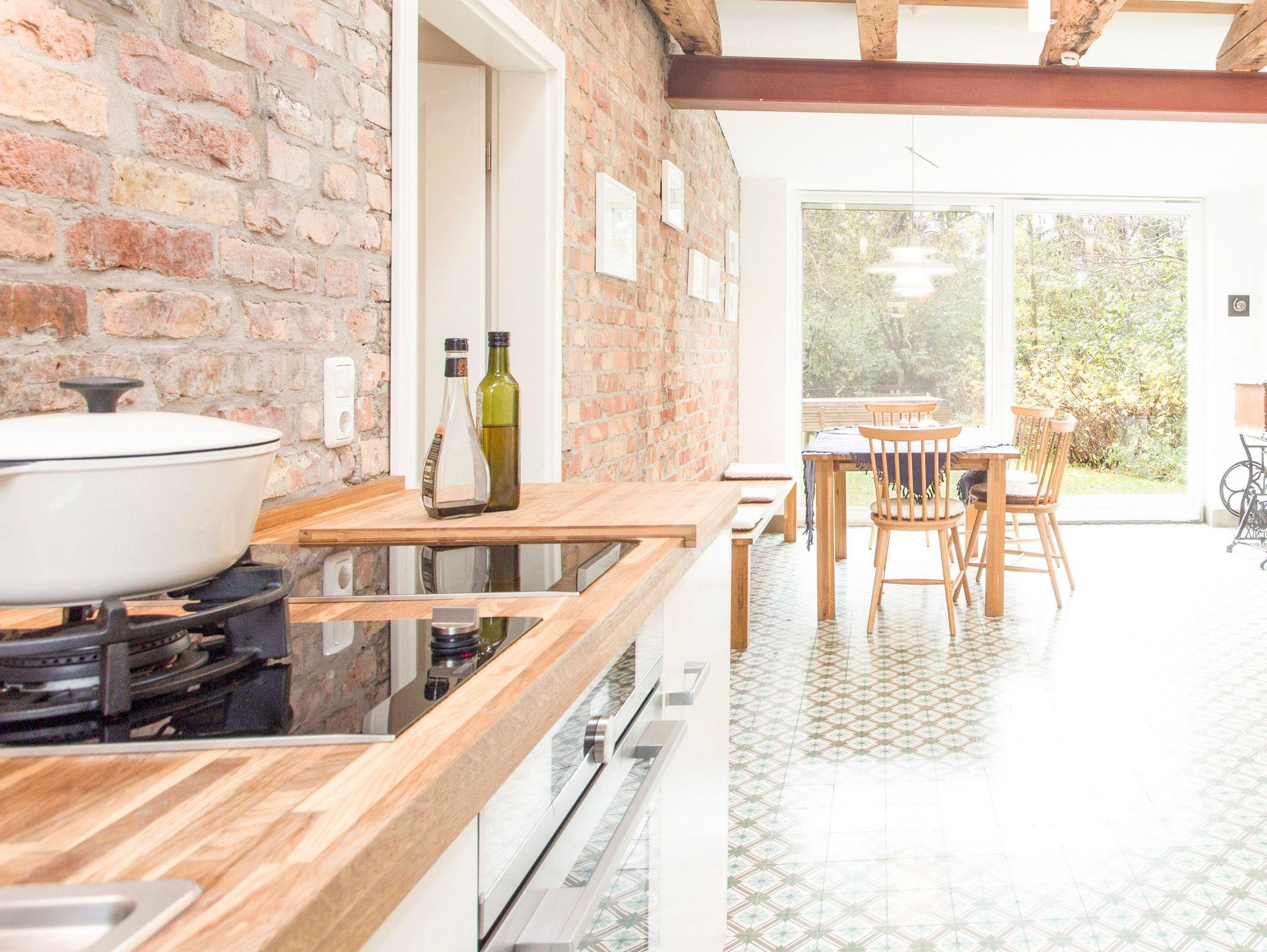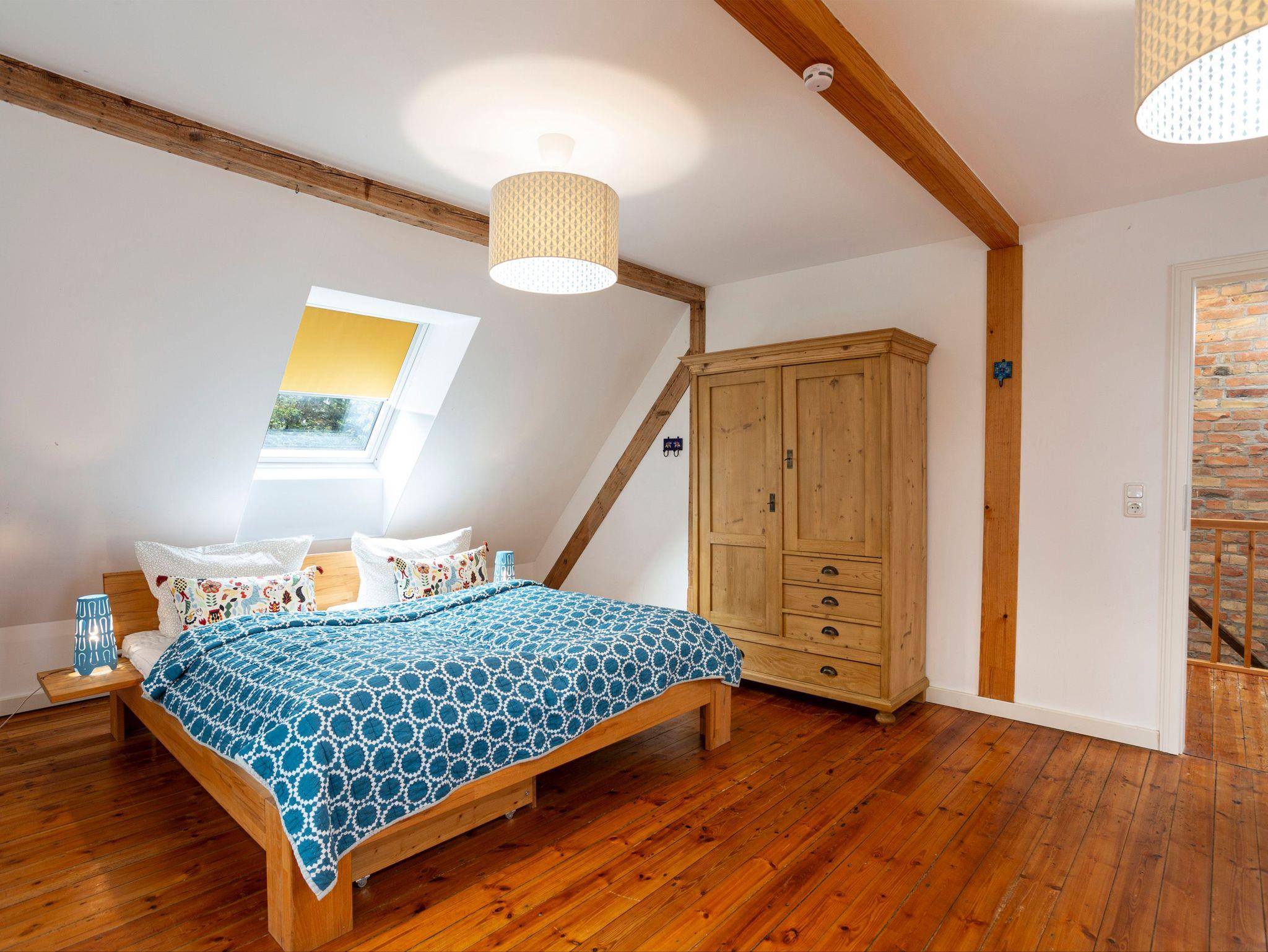 Rustikale Elemente treffen auf modernen Landhaus-Charme im Landhaus Merle. Auf 120 m² erwarten bis zu 8 Personen ein individuell eingerichtetes ehemaliges Bauernhaus. Das über 3 Ebenen angelegte Ferienhaus verfügt über 3 Schlafzimmer, eine große Küche mit Essbereich, ein Wohnzimmer mit Schlafsofa und zwei Bäder. Im Erdgeschoss betritt man das Landhaus über die voll ausgestattete Küche mit großzügigem Essbereich. Hier kann nach Lust und Laune gekocht und gebacken werden. Dafür stehen neben einem GasWokBrenner, Induktionskochfeld, Backofen und Kühlschrank mit Gefrierfach auch Kochutensilien für den täglichen Bedarf zur Verfügung. Das Wohnzimmer mit Schlafsofa (2x80x200) und TV, sowie das erste Schlafzimmer mit einem Doppelbett (160 x 200cm, getrennte Matratzen) und das Bad mit Dusche und WC befinden sich ebenfalls im Erdgeschoss. In der ersten Etage gibt es ein weiteres Bad mit Badewanne und WC sowie ein geräumiges Schlafzimmer mit Doppelbett (180 x 200cm, getrennte Matratzen) und Kleiderschrank. Über eine steile, schmale Leiter erreicht man den offenen Spitzboden in dem zwei weitere Einzelbetten (80x200) bereit stehen.