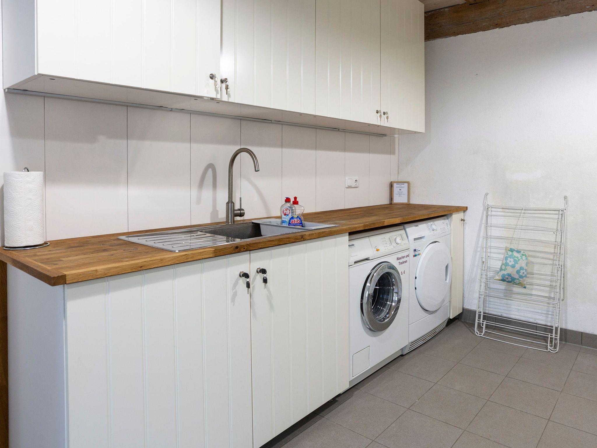 Ihre Fahrräder und Badeutensilien finden im Abstellbereich genügend Platz. Der Hauswirtschaftsraum ist mit einer Waschmaschine und einem Trockner ausgestattet.