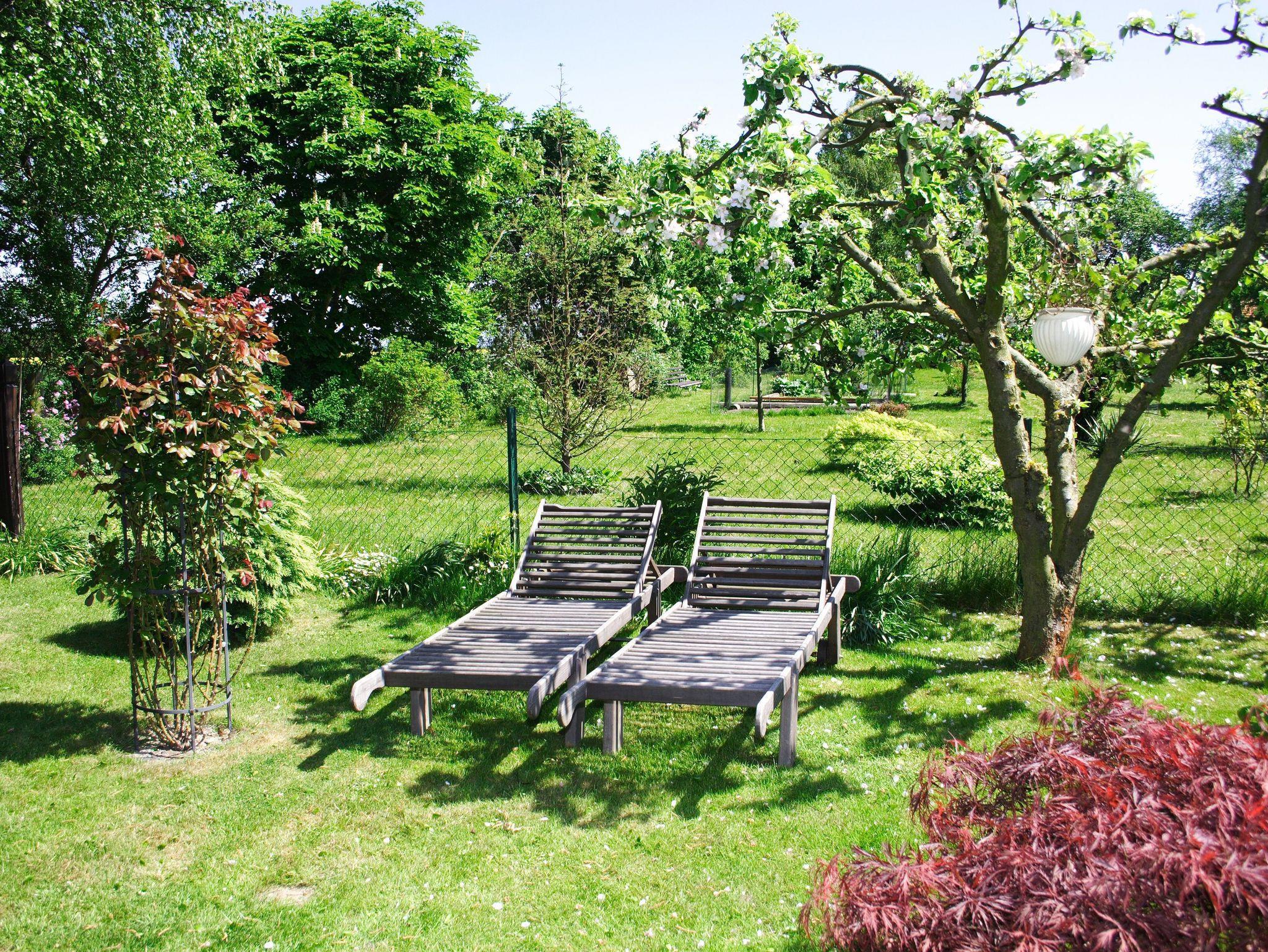 Gartenmöbel und Erholungsliegen sowie eine abschließbare Fahrradunterstellmöglichkeit im Garten sind auch vorhanden.