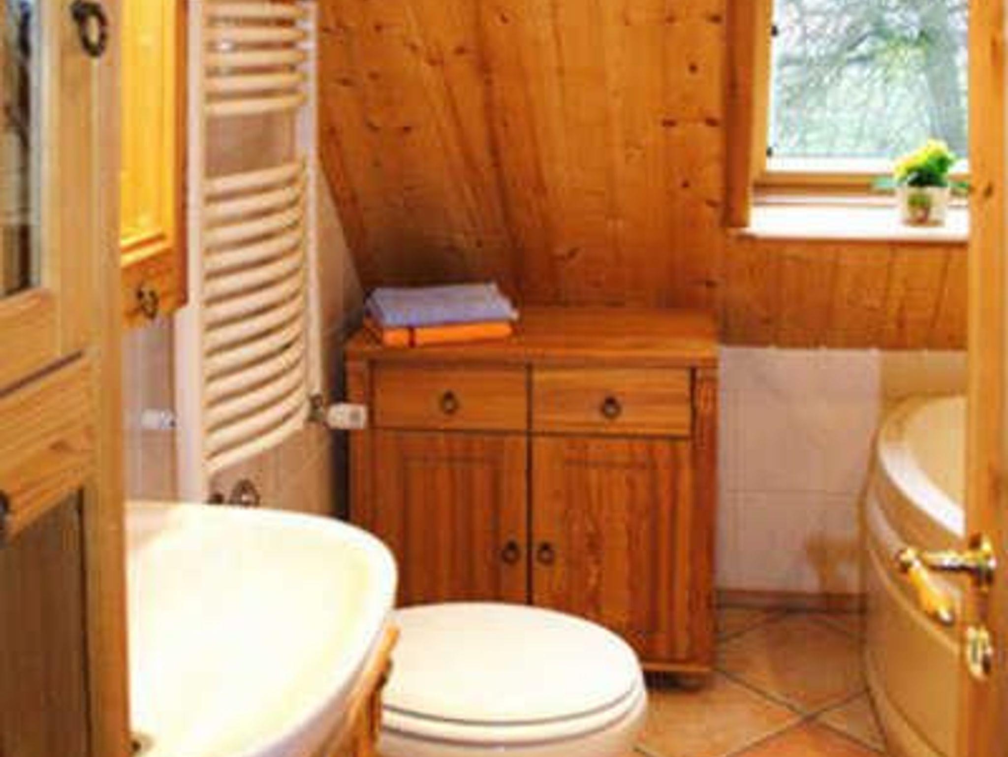 Im Badezimmer gibt es eine Badewanne sowie einen Handtuchtrockner.