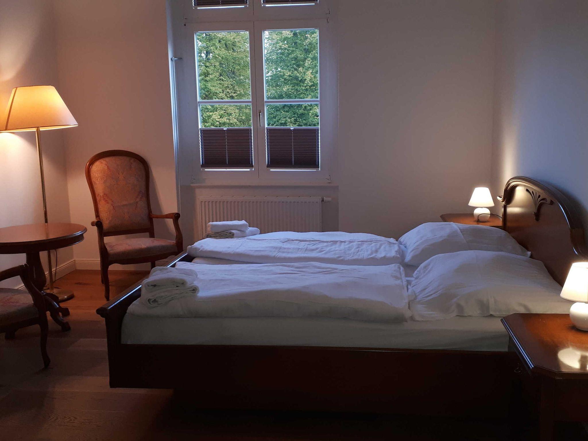 Die Schloss Superior Suite (70m²) ist ein großzügig geschnittenes, modern eingerichtetes Apartment im 1. Obergeschoss mit separatem Schlafzimmer und großem Doppelbett (1,80 x 2,00).
