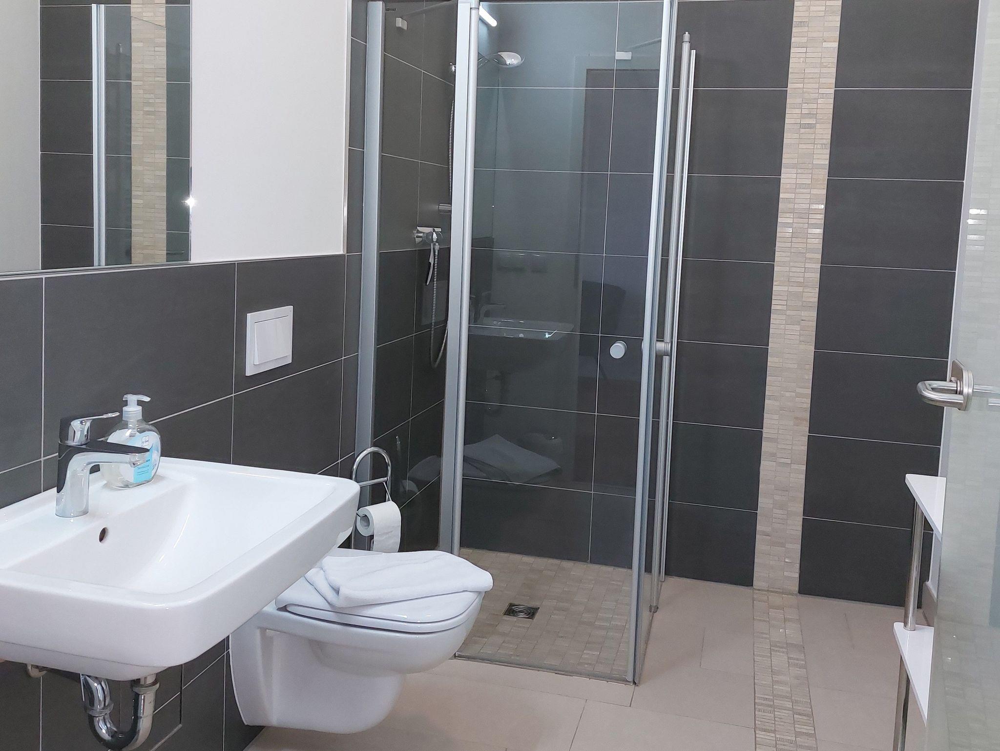 Alle Wohnungen verfügen über moderne Bäder und bodentiefe Duschen. Im Preis ist die Erstausstattung mit Bettwäsche, Handtüchern sowie Geschirrtuch und Spülmittel enthalten.