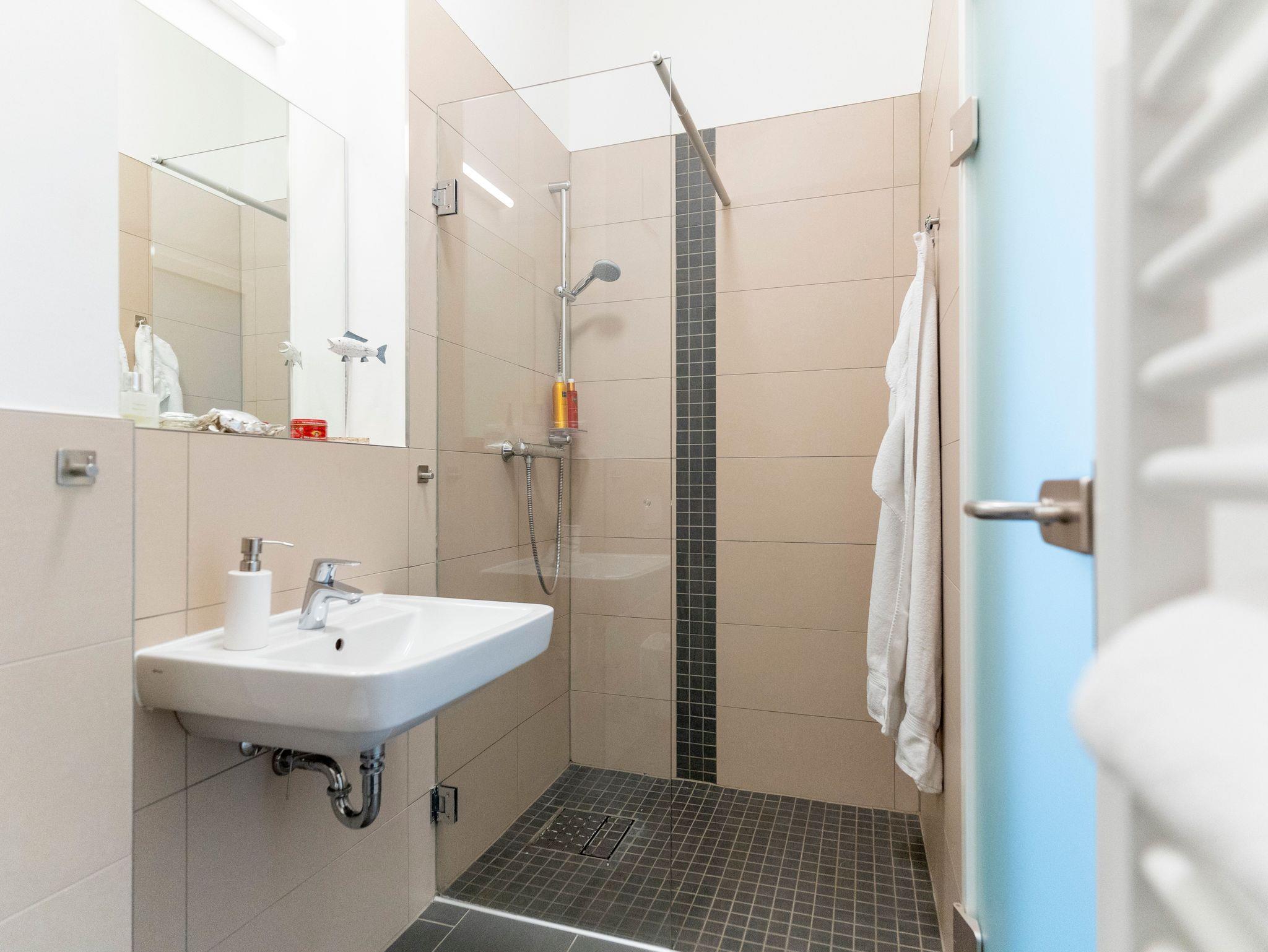 Alle Wohnungen verfügen über moderne Bäder und bodentiefe Duschen. Im Preis ist die Erstausstattung mit Bettwäsche, Handtüchern sowie Geschirrtuch und Spülmittel enthalten.