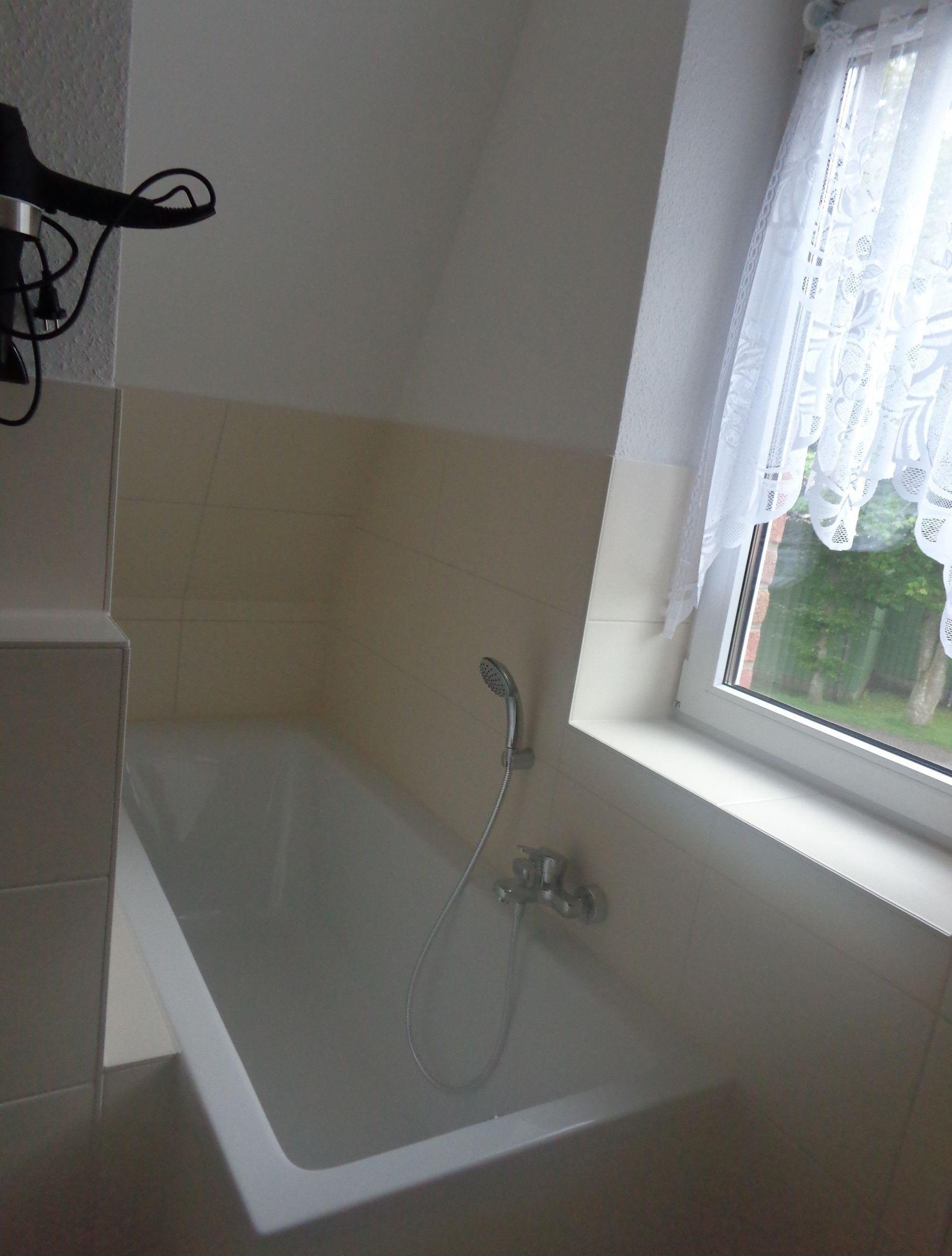 Alle Fußböden sind gefliest und mit Fußbodenheizung ausgestattet. Das Bad verfügt über Dusche und Badewanne.