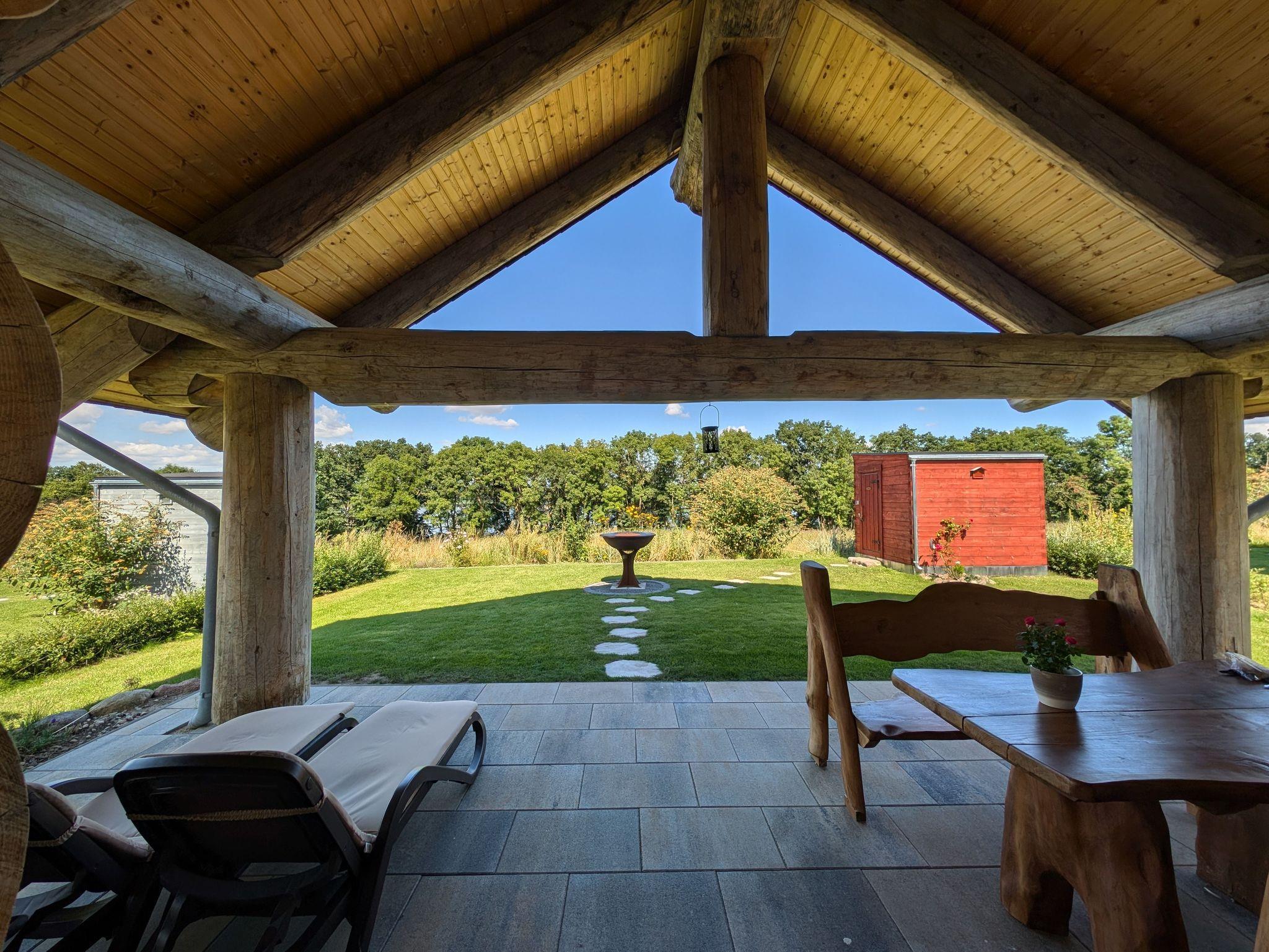Die 30 qm² große überdachte Terrasse lädt zu jeder Jahreszeit ein. Genießen bei einem Glas Wein und leckerem Essen entspannte, romantische Momente mitten in der Natur Erholung pur!