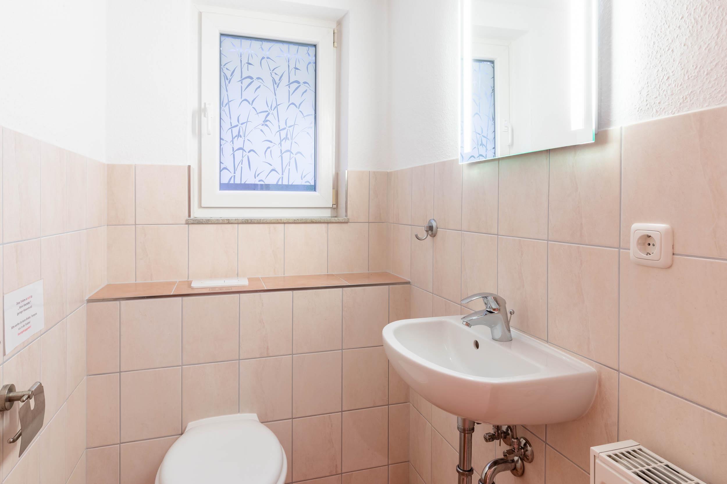 Des Weiteren befinden sich im Erdgeschoss eine Diele mit einer Kommode und eine Garderobe sowie ein Gäste-WC.