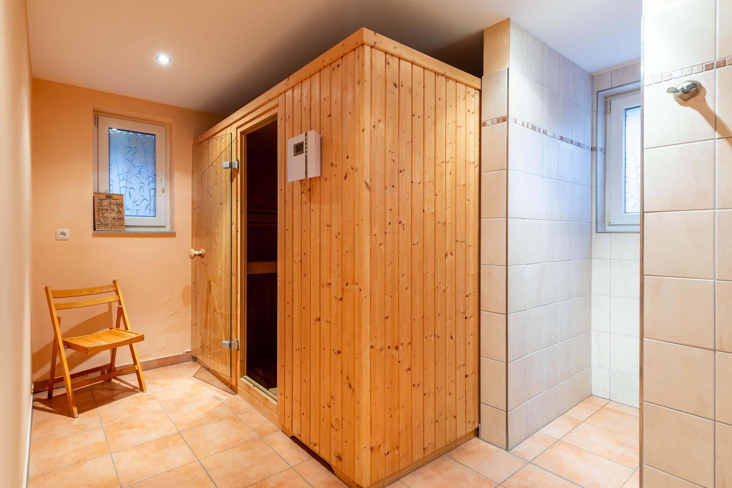 Darüber hinaus erwartet Sie auf dieser Ebene eine Sauna, die von bis zu 4 Gästen genutzt werden kann. Das ist Erholung pur!