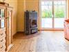 Der Wohnbereich im Erdgeschoss wartet unter anderem mit einem wunderschönen Kaminofen, zwei Sofas und einem Sessel auf – perfekt für den abendlichen Ausklang nach einem ereignisreichen Tag an der Ostsee.