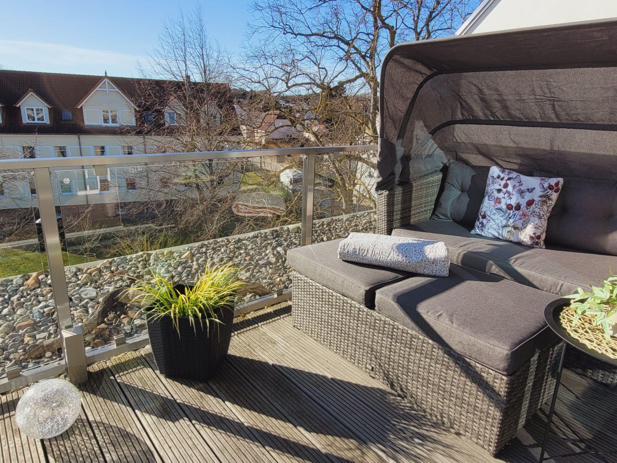 The modern residential building was built in 2018 and is located in the centre of Lauterbach, just 100 m from the harbour. high-quality and tasteful furnishings create a cosy atmosphere and offer our guests a beautiful temporary home. A special feature of the flat is the spacious eat-in kitchen with dining area and adjoining balcony. The kitchen is fully equipped and leaves nothing to be desired (Internet radio, dishwasher, oven, ceramic hob, extractor bonnet, fridge-freezer, etc.) A solid wooden staircase leads to the modern studio on the upper floor (no sloping ceilings) and to the large roof terrace. The studio invites you to relax. In the evening, thanks to the practical bed function, the couch can be transformed into a comfortable bed for the night in no time at all.the roof terrace is equipped with an outdoor couch and a cosy seating area as well as sun loungers for relaxing.from the balcony and the roof terrace you have a wonderful view over the harbour and the Bodden. The high window fronts (sliding elements) allow plenty of light to enter, and the studio and bedroom are of course equipped with a TV (55 inch) with internet connection. all the furniture in the spacious bedroom is made of light-coloured wild oak wood and exudes a friendly and cosy atmosphere. the modern bathroom has a window and a rain shower. A hairdryer is available for you.there is a passenger lift in the house and you will receive a free car parking space directly at the house.we offer our guests W-Lan free of charge. In addition, you can use a washing machine and the drying cellar.a linen package (bed linen, 2 towels per person) is included.short descriptionOther : Non-smoking houseShort description 1Number of kitchens : 1Other rooms : Dining room or kitchen/living roomLiving room 1Other living room equipment : The modern studio invites you to relax with a comfortable couch. In the evening, it can be transformed into a comfortable bed for the night in no time at all thanks to the practical bed function. A special plus point: the sofa has a real mattress for a comfortable night's sleep. The sofa is also equipped with a sturdy base frame and slatted frame. The sofa bed with bed function is perfect for a little break during the day or as a comfortable overnight accommodation for our guests.Bedroom 1Other bedroom furnishings : In the spacious bedroom, all the furniture is made of light-coloured wild oak wood and exudes a friendly and cosy atmosphere. An additional television with internet connection is also available here.Kitchen 1Other kitchen equipment : The kitchen is fully equipped and leaves nothing to be desired (internet radio, dishwasher, oven, ceramic hob, extractor bonnet, fridge-freezer, etc ). SurroundingsLeisure facilities : Boat rentalSports facilities in the area : Fishing, cycling, sailingSurroundings 1Excursions : Lauterbach has a harbour and a connection to the railway network of both the standard gauge and the Rügen Bäderbahn, and passenger ships also leave from the harbour. An important tourist destination is the island of Vilm, not far from Lauterbach.place description : Lauterbach is a district of the town of Putbus on the largest German Baltic Sea island of Rügen. The village is located southeast of Putbus on the Greifswalder Bodden.Garden and outdoor facilitiesRecreational facilities at the property : PlaygroundServices 1Other : Lauterbach has a harbour and a connection to the railway network of both the standard gauge and the Rügen Bäderbahn.Lauterbach has various catering establishments. The harbour, which is also used as a marina, is important for the local economy. Passenger ships also leave from the harbour. The island of Vilm, not far from Lauterbach, is an important tourist destination and shopping facilities are within walking distance (300 metres).