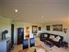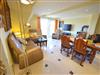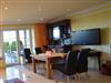 Großzügiges Wohn-/Esszimmer mit Ausgang zum großen Balkon mit direktem traumhaften Blick auf die Ostsee, den kleinen Hafen von Groß Zicker und die gegenüber der Bucht liegenden Orte Thiessow und Klein Zicker. Schöne Ledergarnitur mit Opiumtisch. Speisetafel mit sechs Stühlen, großer Hark-Kaminofen, antike Vitrinen, kleine Bücherauswahl, Plasma-TV mit 125 cm Großbild, Fußbodenheizung, DVD-Recorder, Stereoanlage, CD-Player, Kinderhochstuhl, Wände dekoriert mit Spiegeln und Gemälden, sehr ansprechende Beleuchtung.