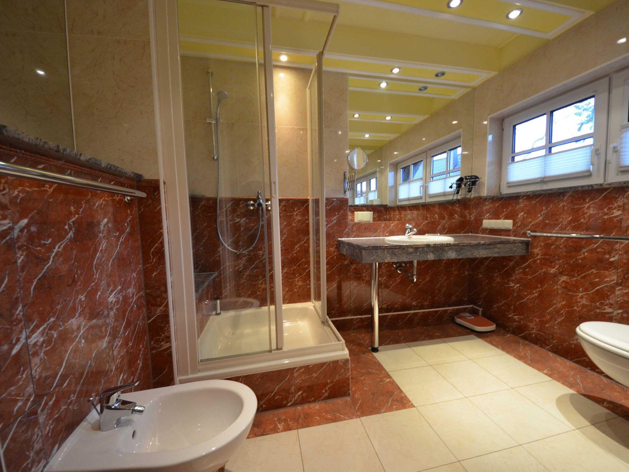 1 Bad mit Dusche aus Naturstein / Granit mit Fön und