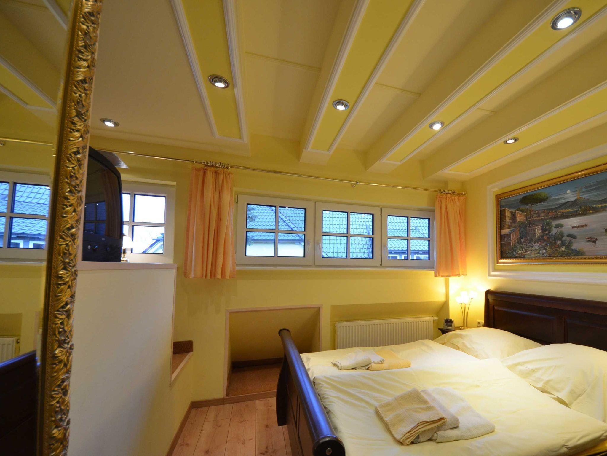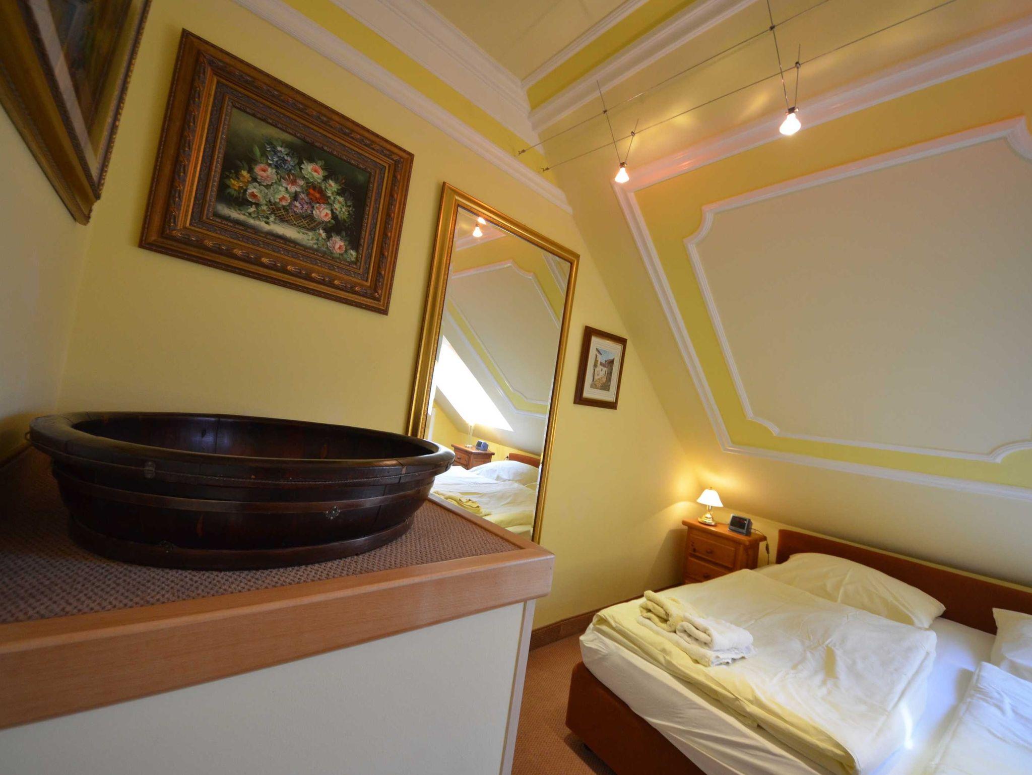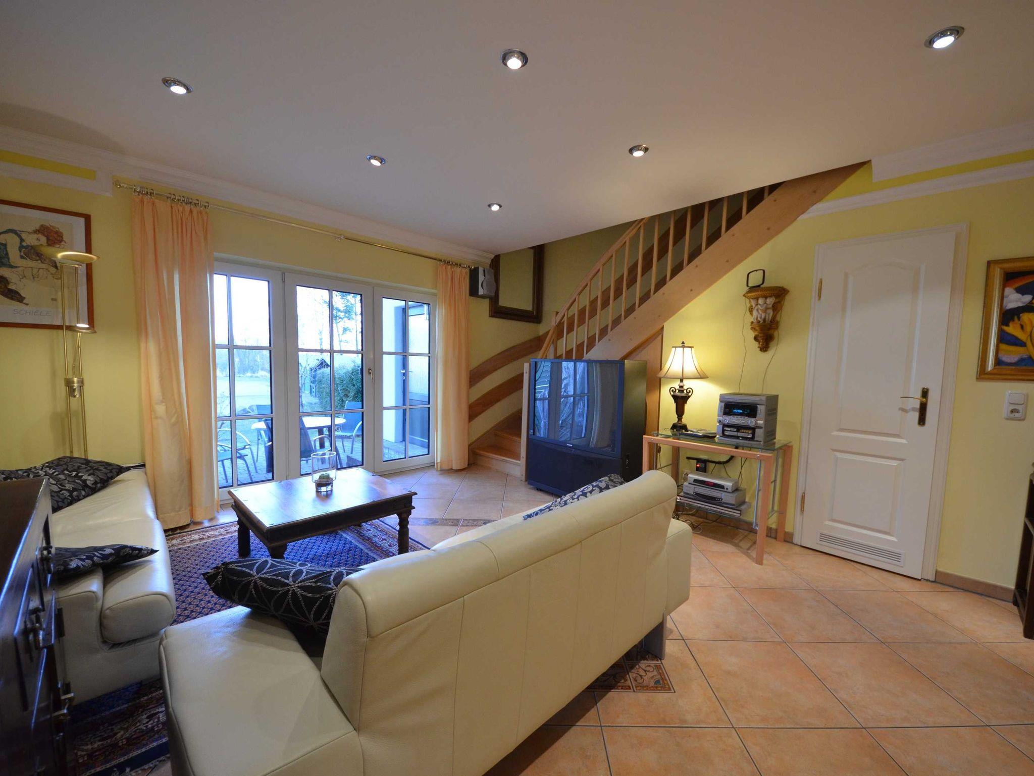 2 Bäder, Fußbodenheizung, schön eingerichtetes Wohn- Esszimmer, Couchgarnitur mit Leder bezogen, Opiumtisch, Speisetafel mit Stühlen, Geschirrschrank, Sat - TV, Telefon, Spiegel pp.