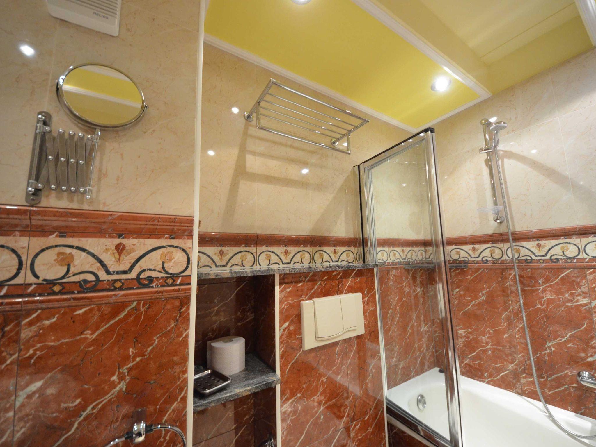 beheizbarer Handtuchhalter, Fön, Schminkspiegel, Dusche in der Wanne mit