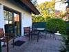 Terrasse mit Gartenmöbeln, teilweise Doppelstrandkorb