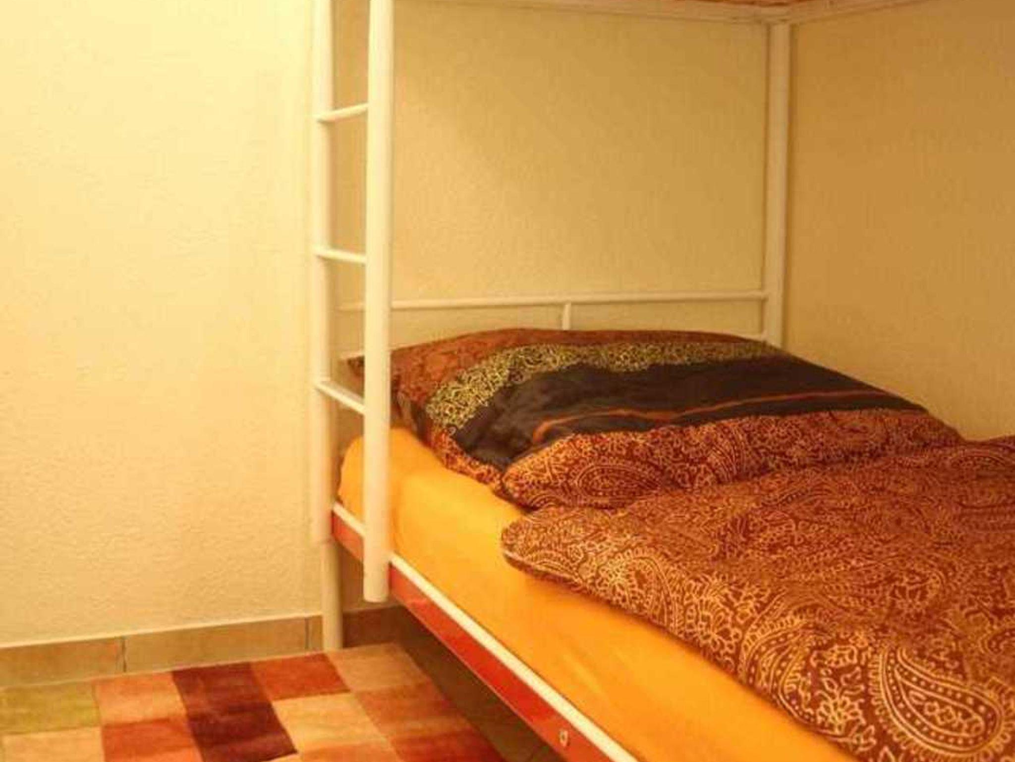 Es gibt ein geräumiges Schlafzimmer mit Kleiderschrank und Doppelbett sowie ein kleineres 2. Schlafzimmer mit Doppelstockbett (90 x 200cm) und Glastür. Im Wohnzimmer steht eine ausziehbare Schlafcouch zur Verfügung.