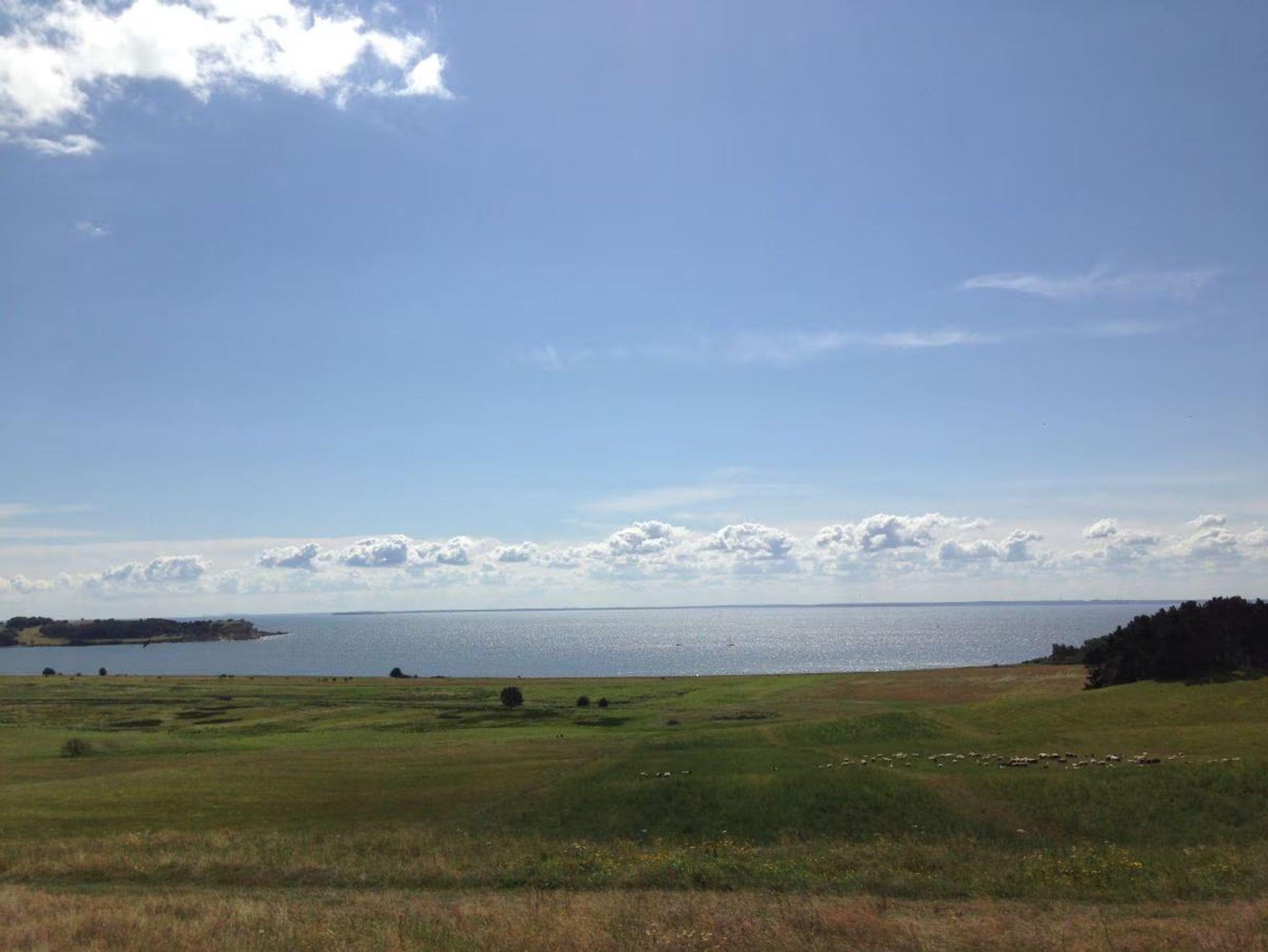 Genießen Sie von hier aus den schönen Blick auf das Meer/Bodden auf der einen ,sowie in die hügeligen Landschaft der Zickerschen Berge auf der anderen Seite.