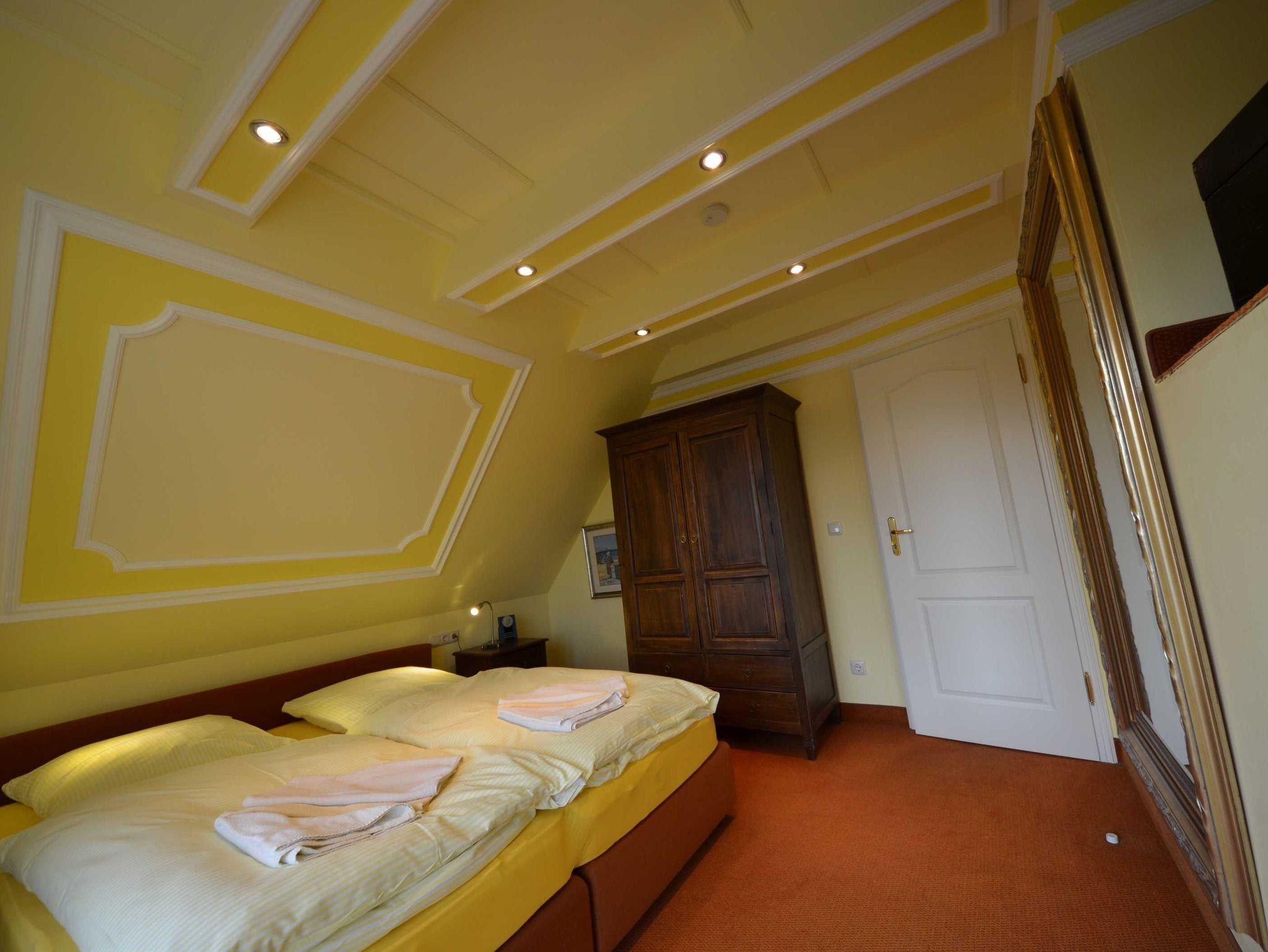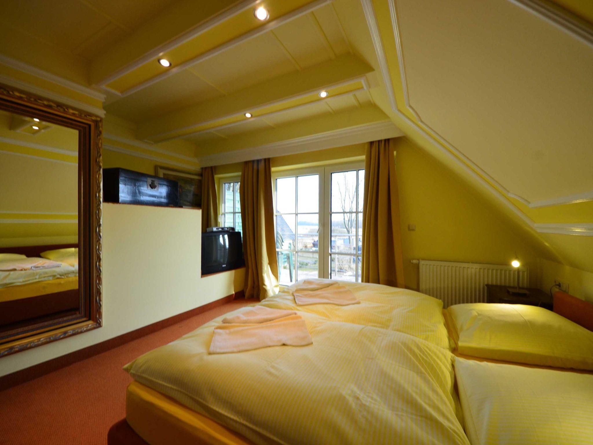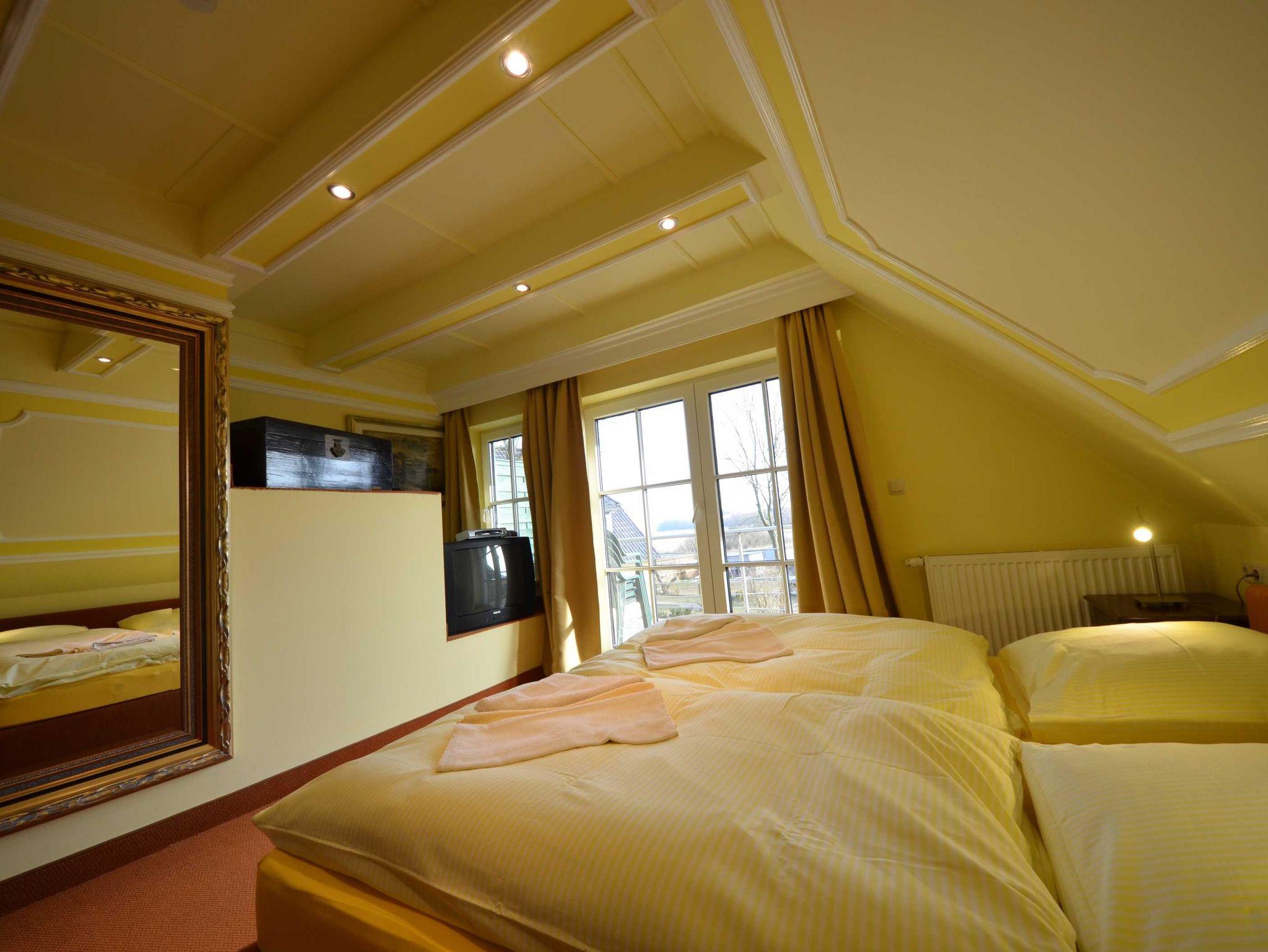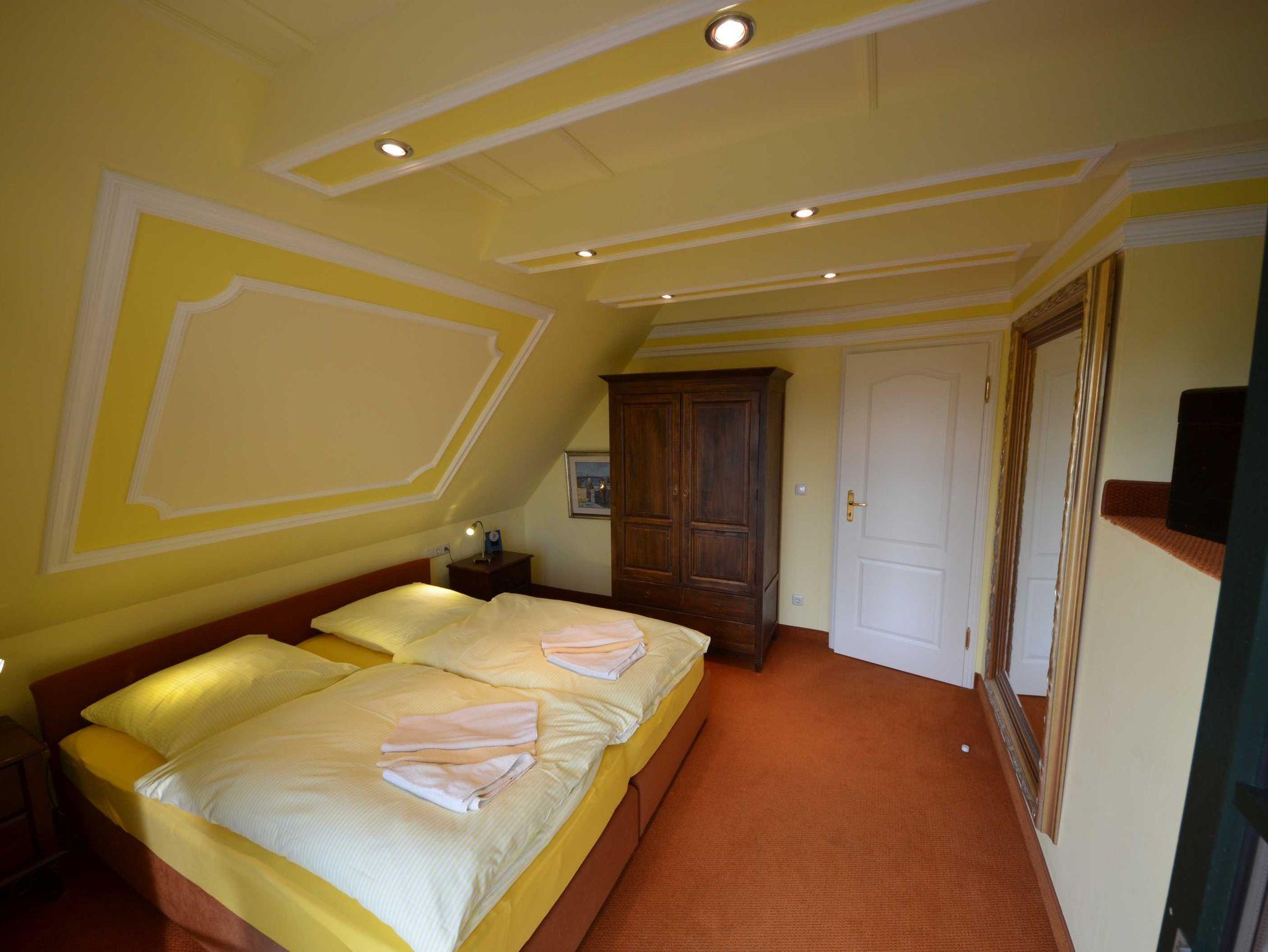 einmal mit Einzelbett 90 x 200 und einmal mit einem Doppelbett 160 x 200.