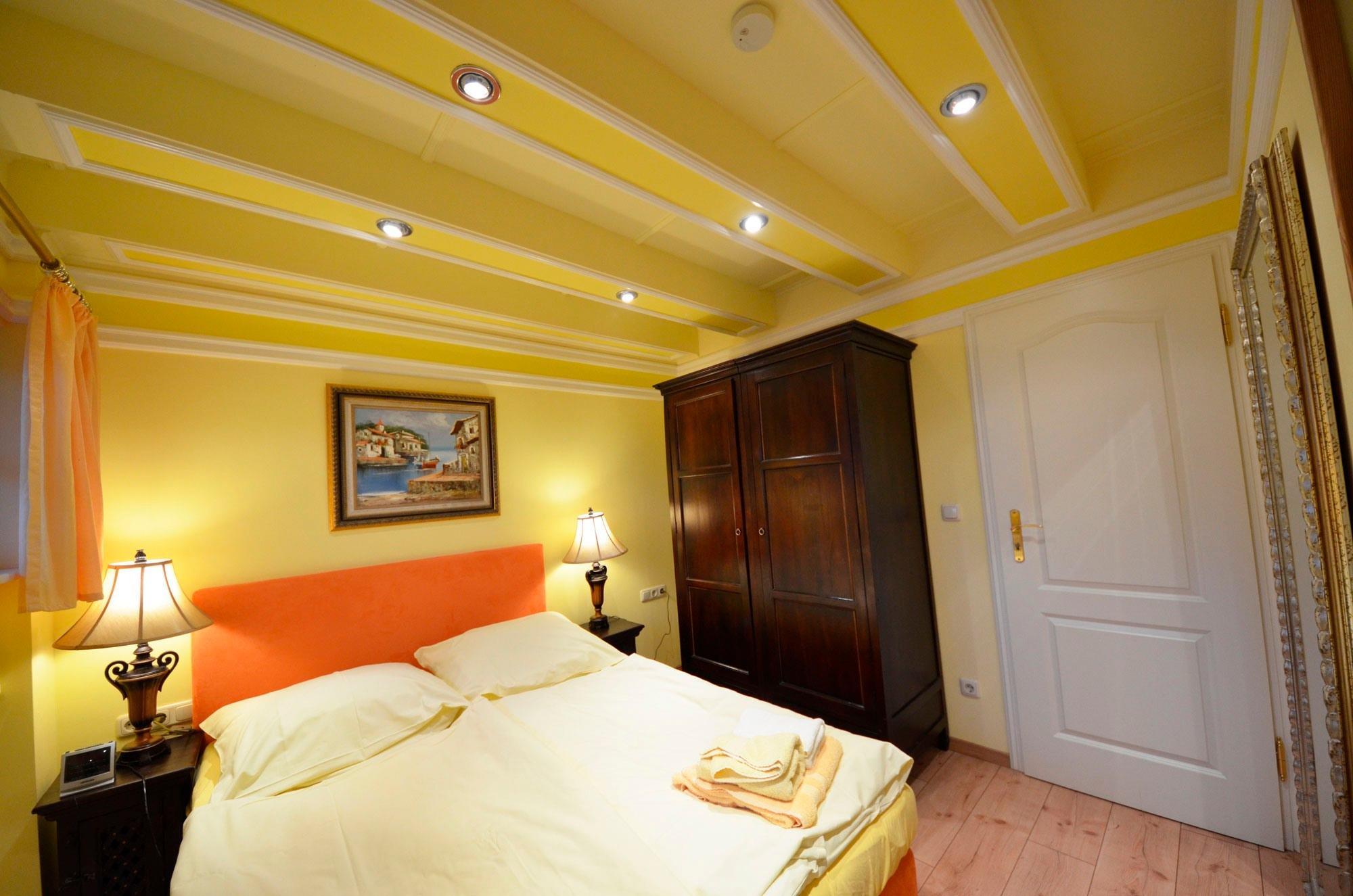 2 Doppel - Schlafzimmer, 1 Bad mit Wanne/Dusche aus Naturstein/Granit, Bidet, Fön und Schminkspiegel.
