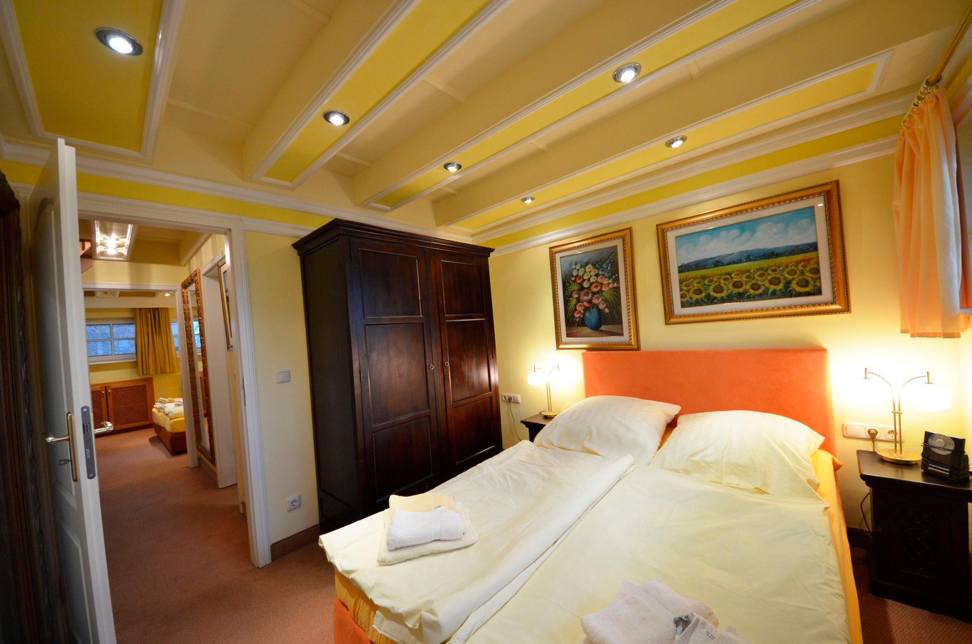Doppelbetten jeweils 160x200 und 180x200, mit aufgezogener Bettwäsche. Radiowecker, mit Bildern dekoriert. Große Ganzkörperspiegel. Schlafzimmer ein Babybett 70x140 (kostenlos) mit aufgezogener Bettwäsche.