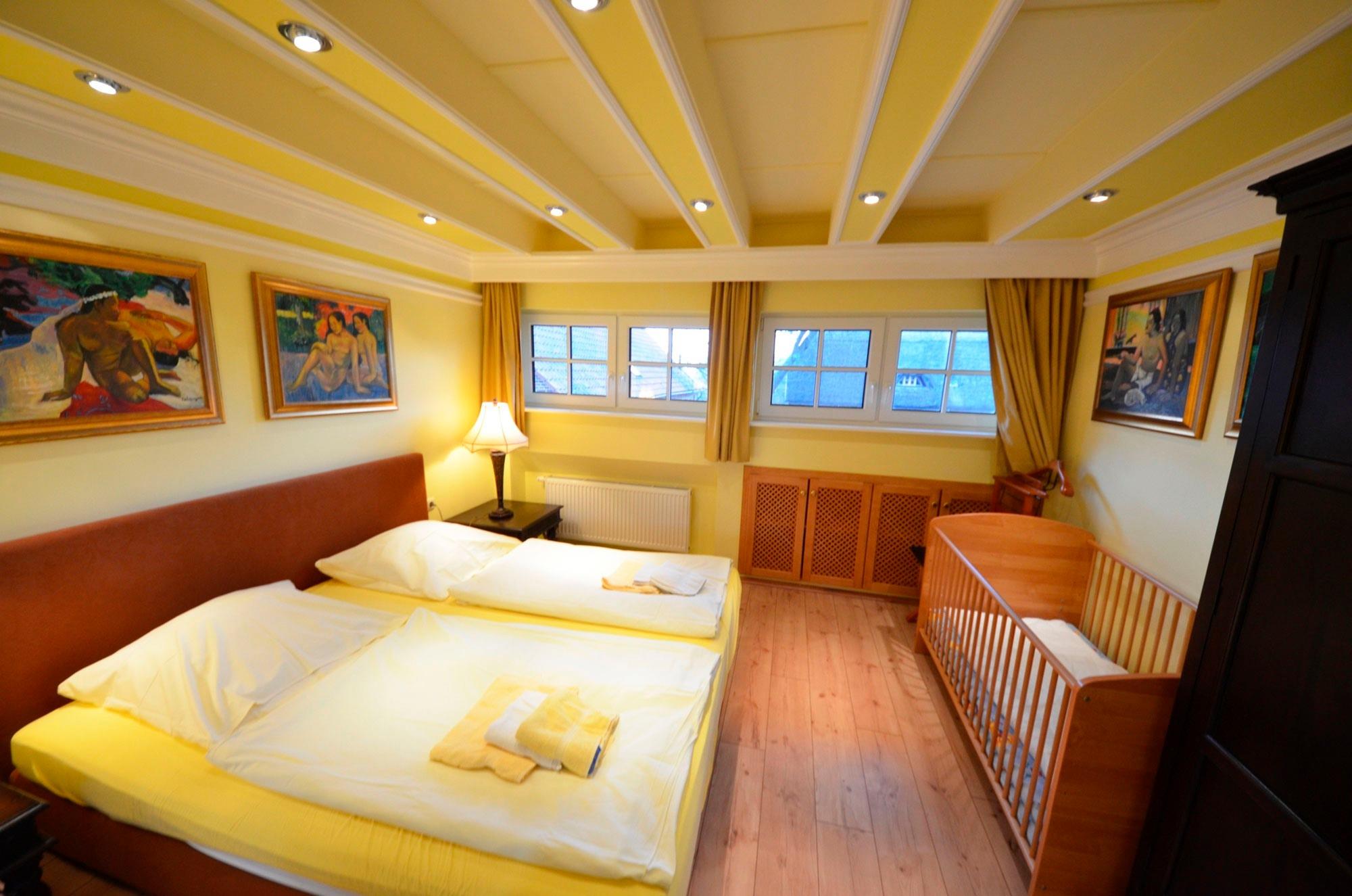 2 Doppel - Schlafzimmer, teils mit Einbauschränken, dekoriert mit Bildern, 2 kostenlose Stellplätze auf dem Grundstück