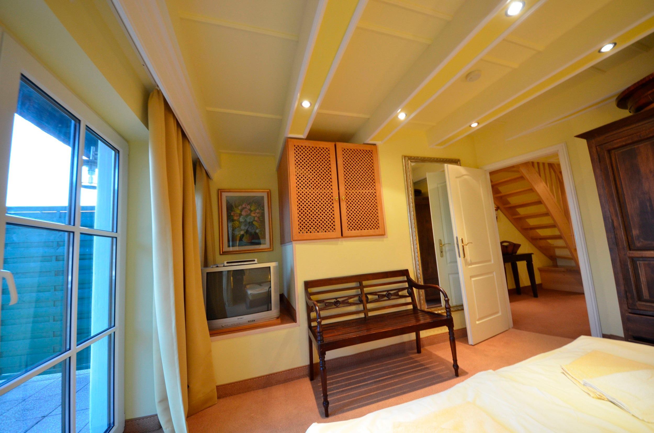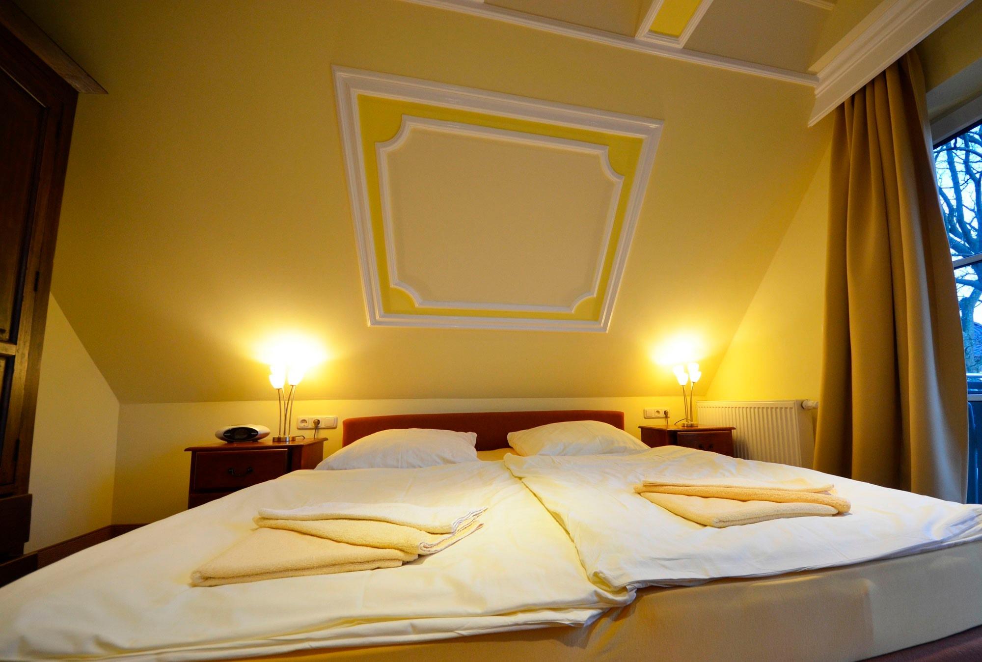 2 kleine, schräge aber gemütliche und helle Zimmer mit Einbauschränken, einmal mit Einzelbett 90 x 200 und einmal mit einem Doppelbett 160 x 200. Bettwäsche aufgezogen.
