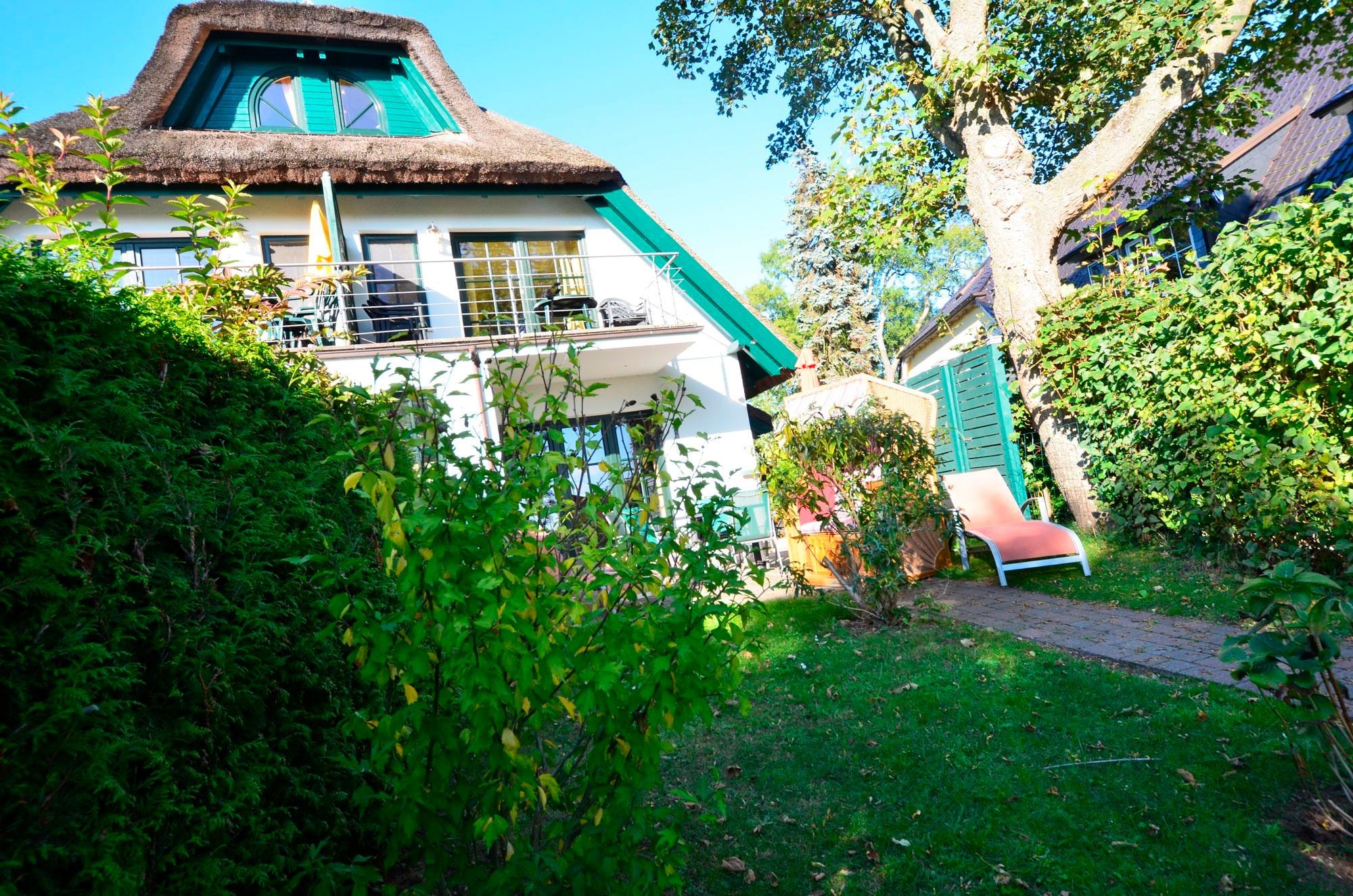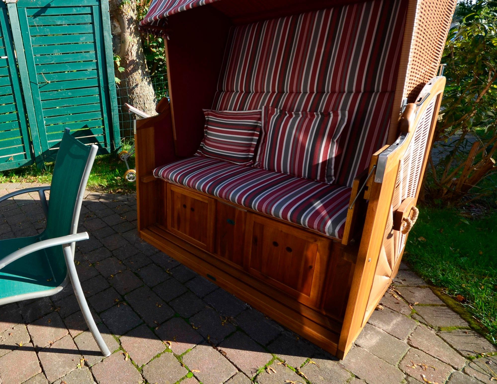 Das Haus hat eine Terrasse mit Gartenmöbeln, eigener Gartenteil, Doppelstrandkorb