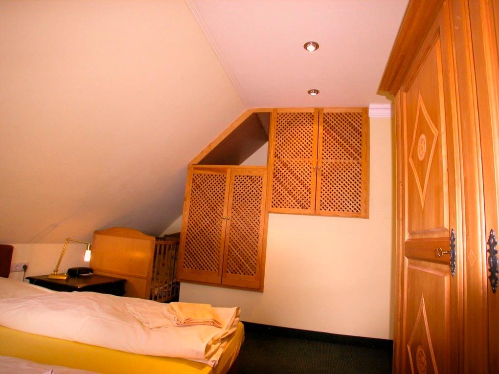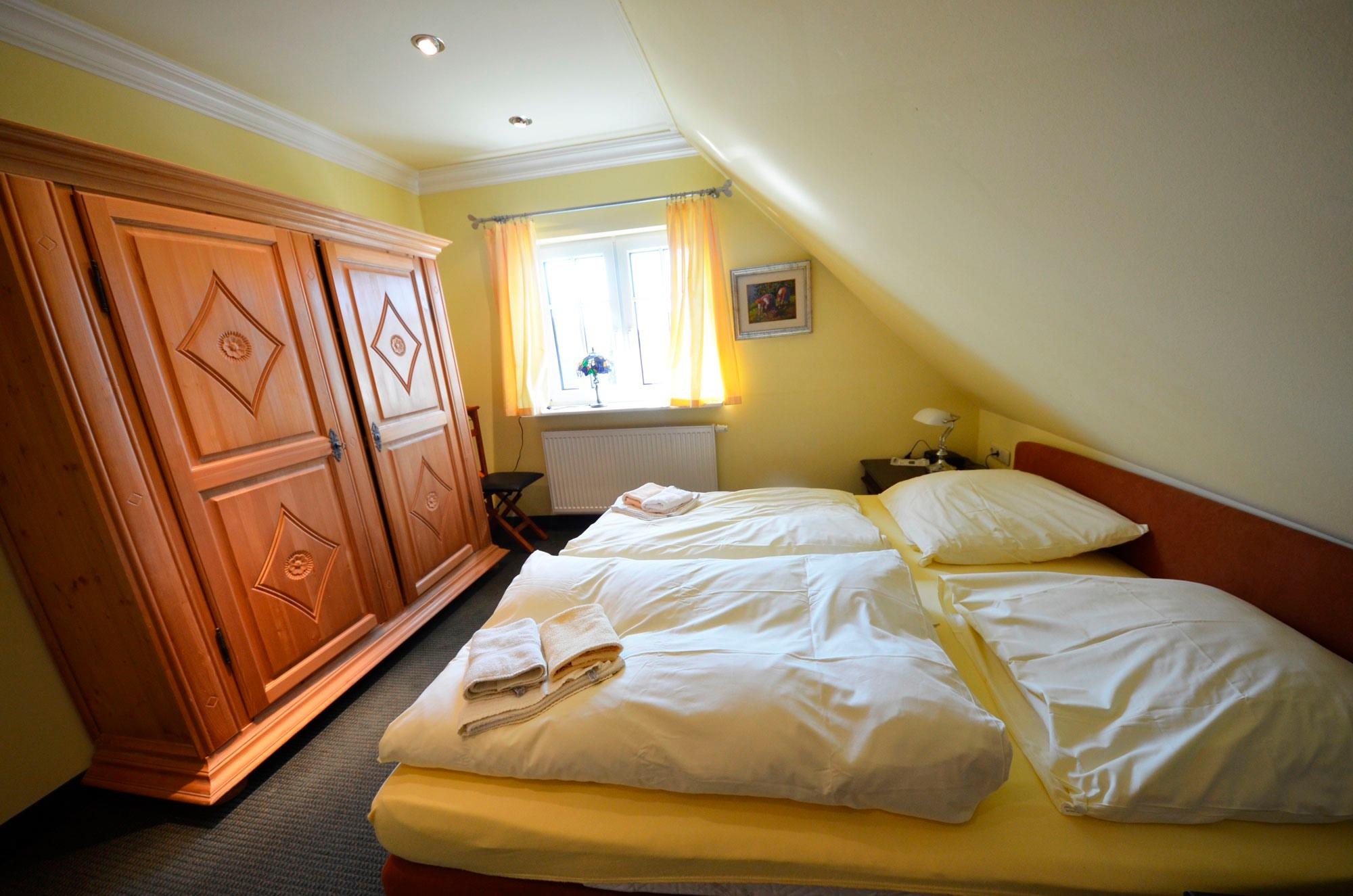 2 Doppel - Schlafzimmer, je mit einem 180x200er und einem 160 x 200er Bett, aufgezogene Bettwäsche. Radiowecker, mit Bildern dekoriert. Große Ganzkörperspiegel. Babybett 70 x 140 (kostenlos) in einem der Schlafzimmer mit Bettwäsche.