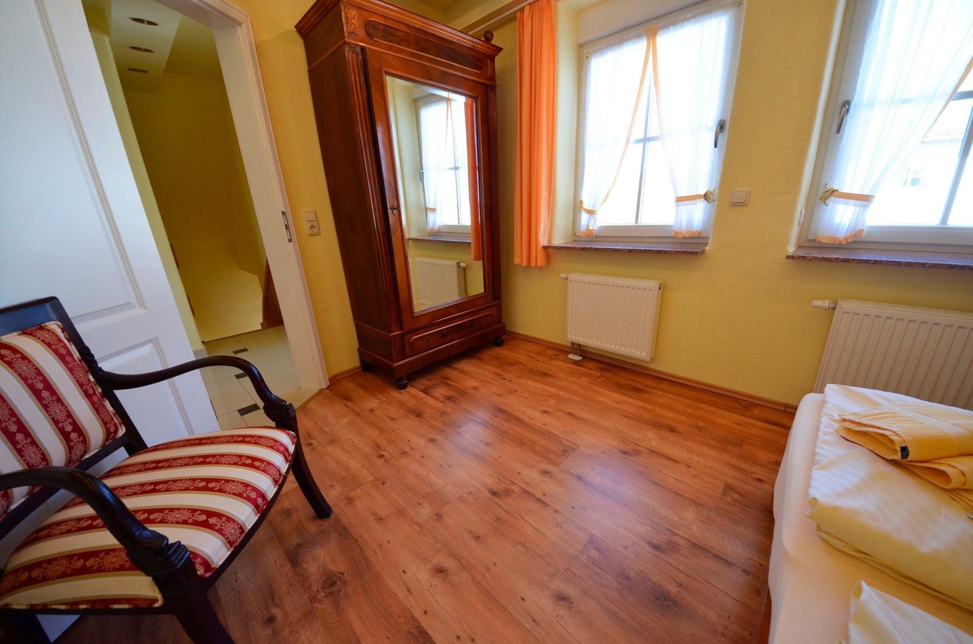 Radiowecker, Wände mit Bildern dekoriert, antiker-Gründerzeit Wäsche/Kleiderschrank, elektrische Rolläden, Fenster mit Mückenschutz