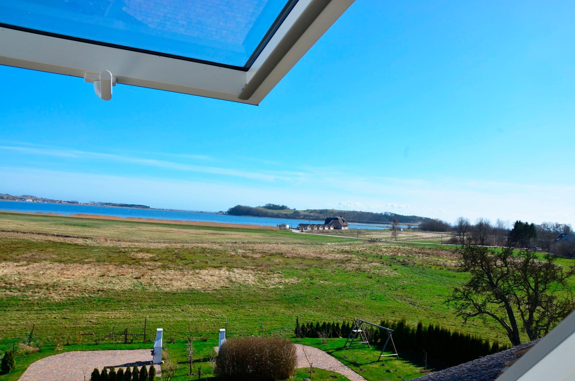 Ferienwohnung "Sonnenkliff" im Obergeschoß der 2008 neu errichteten reetgedeckten und verklinkerten Doppelhaushälfte in Groß Zicker/Halbinsel Mönchgut auf Rügen, Boddenstr. 8a.