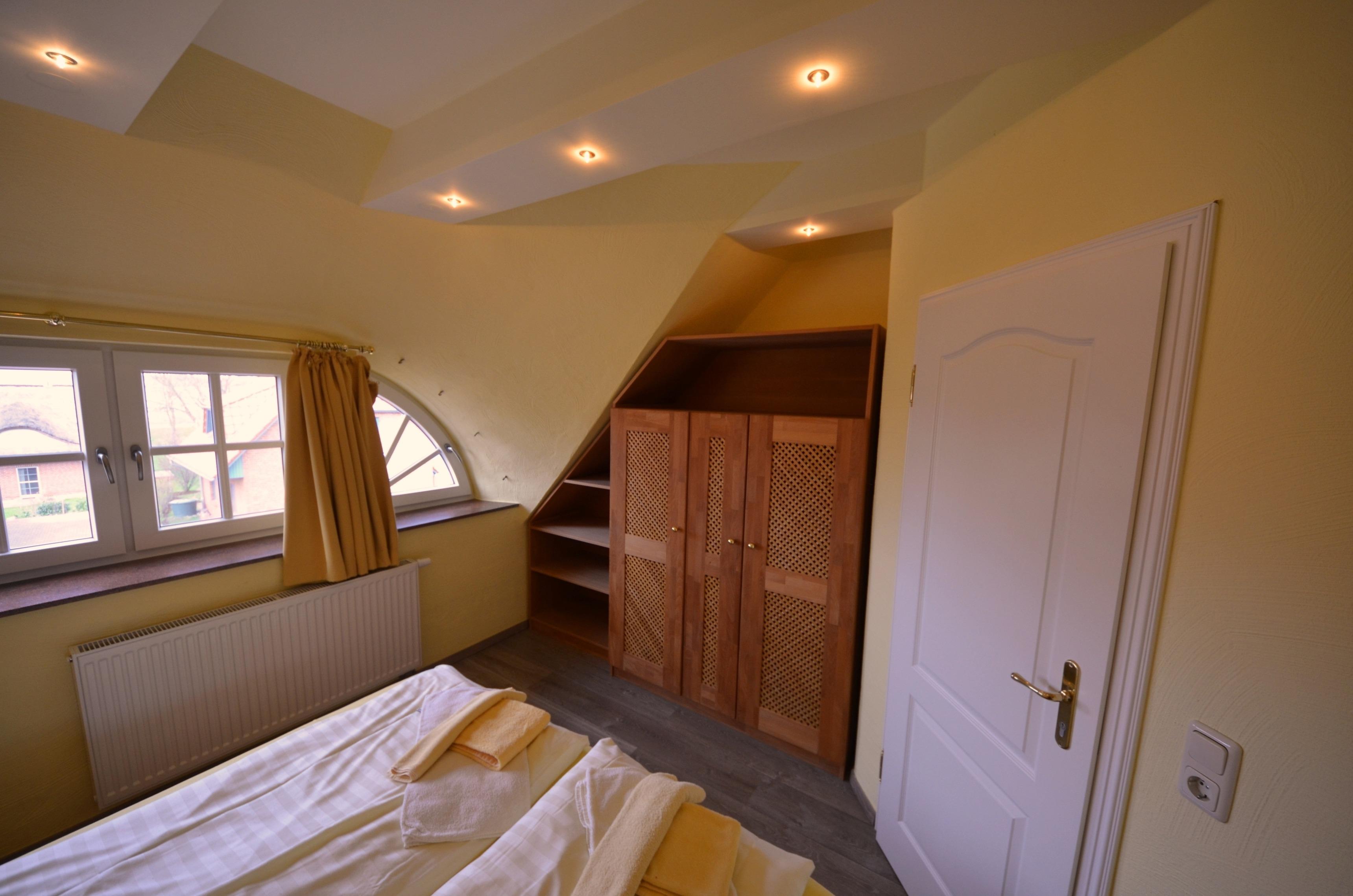 Das Ferienhaus ist bis zu 8 Personen u. Baby geeignet: Das Haus verfügt über 4 Doppelschlafzimmer, 4 Bäder und Sauna. Im OG teils mit elektrischen Rollläden, teils mit Velux-Verdunkelungsrollos.