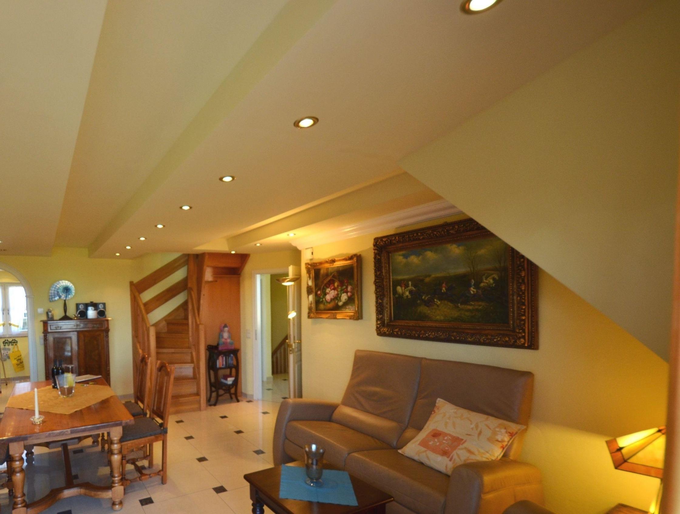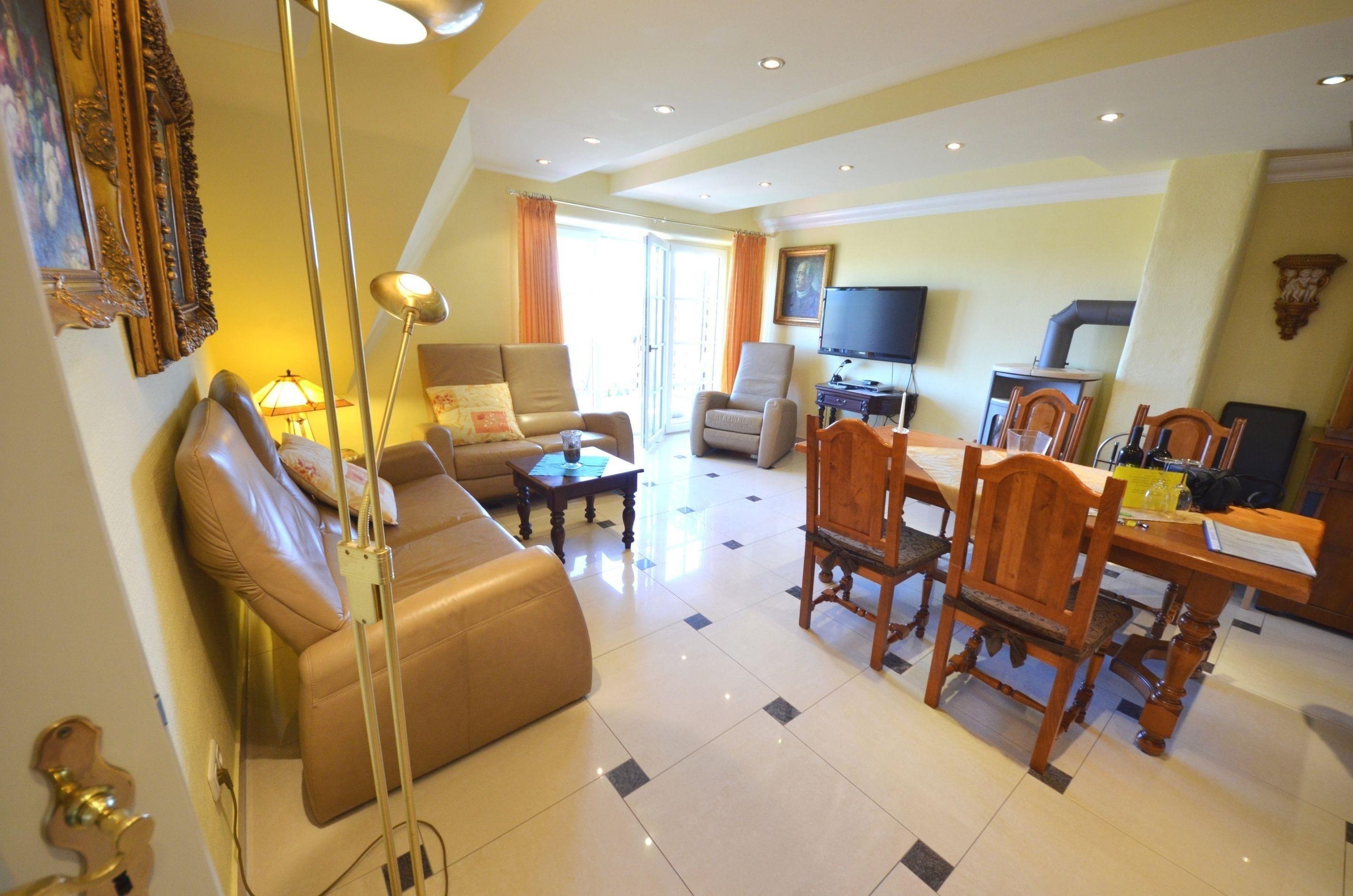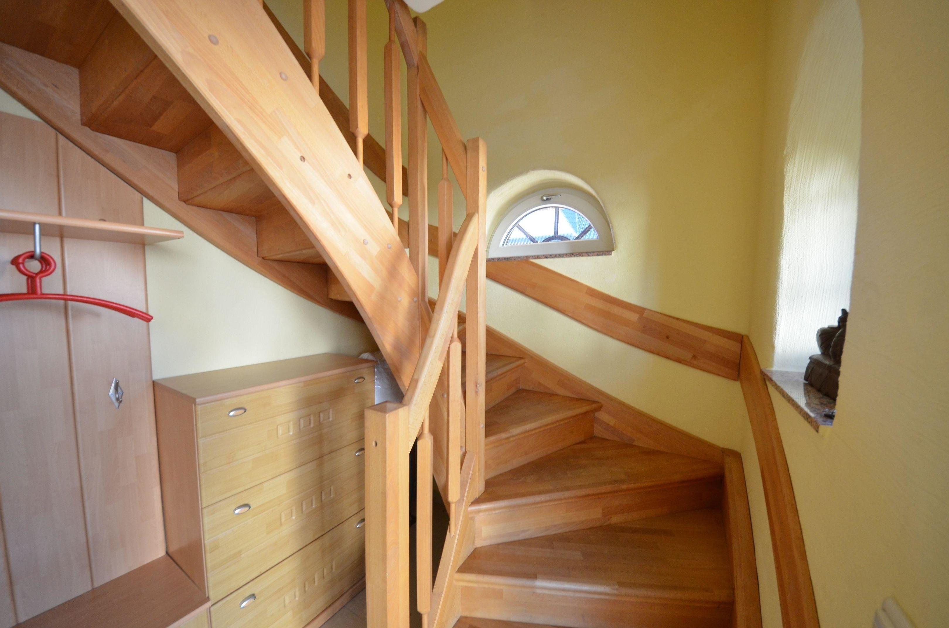 Vom Wohnzimmer aus durch eine schöne Holztreppe ins Dachgeschoß: