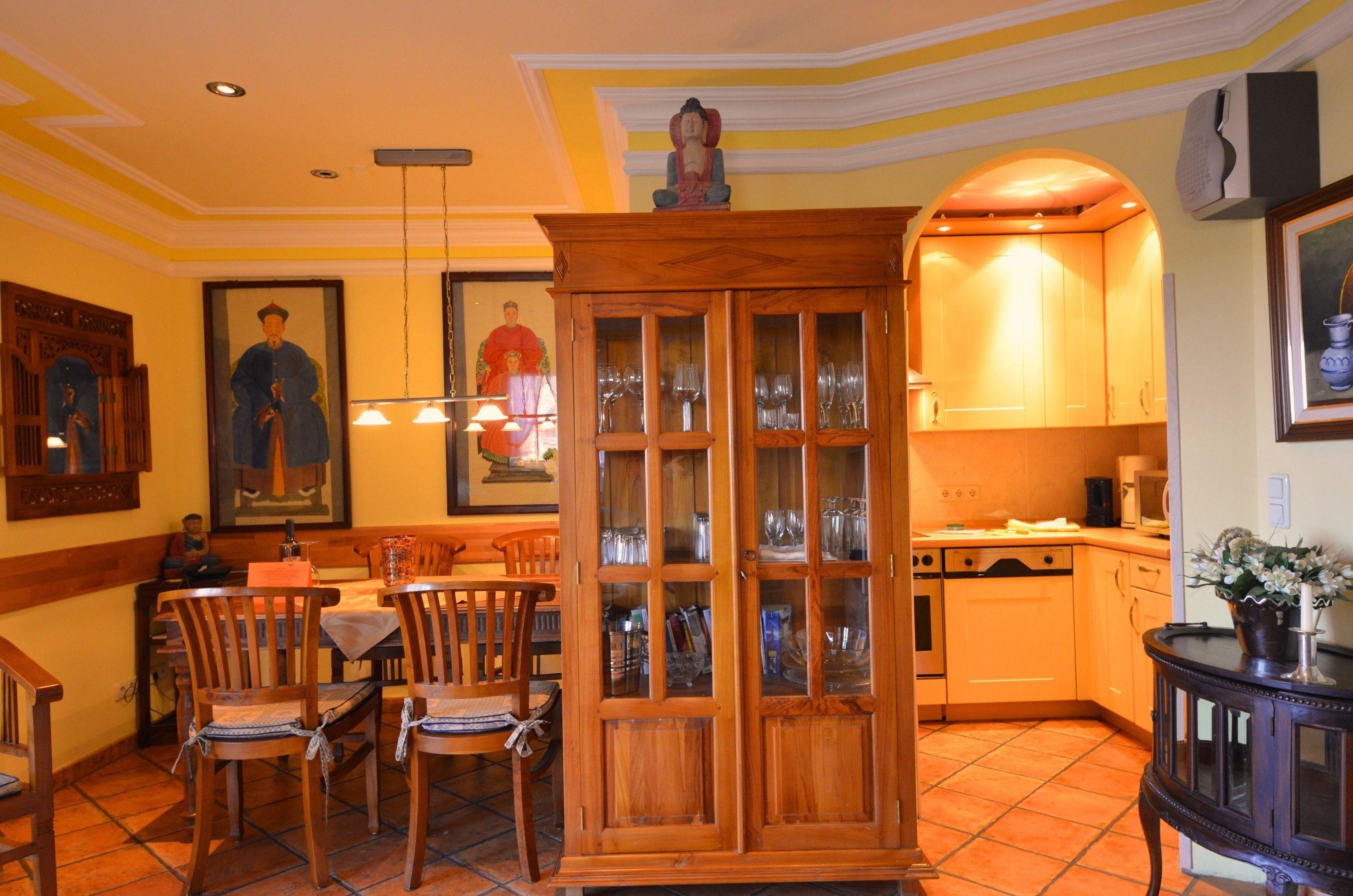 großzügiges Wohn- Esszimmer, schöne Couchgarnitur mit Opiumtisch,