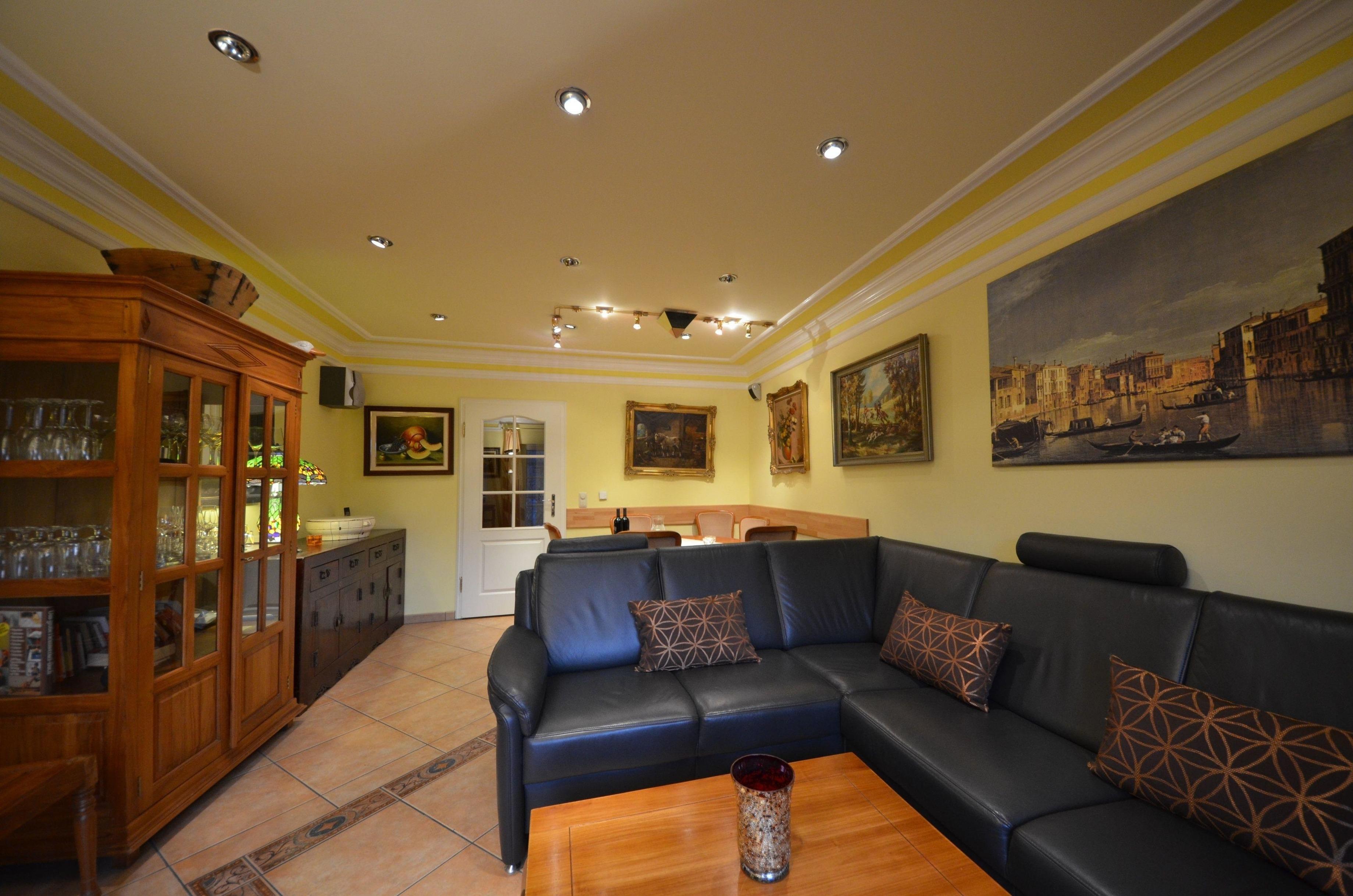 schöne Couch-Garnitur und Opiumtisch, Telefon, 120er - Flachbild - TV,