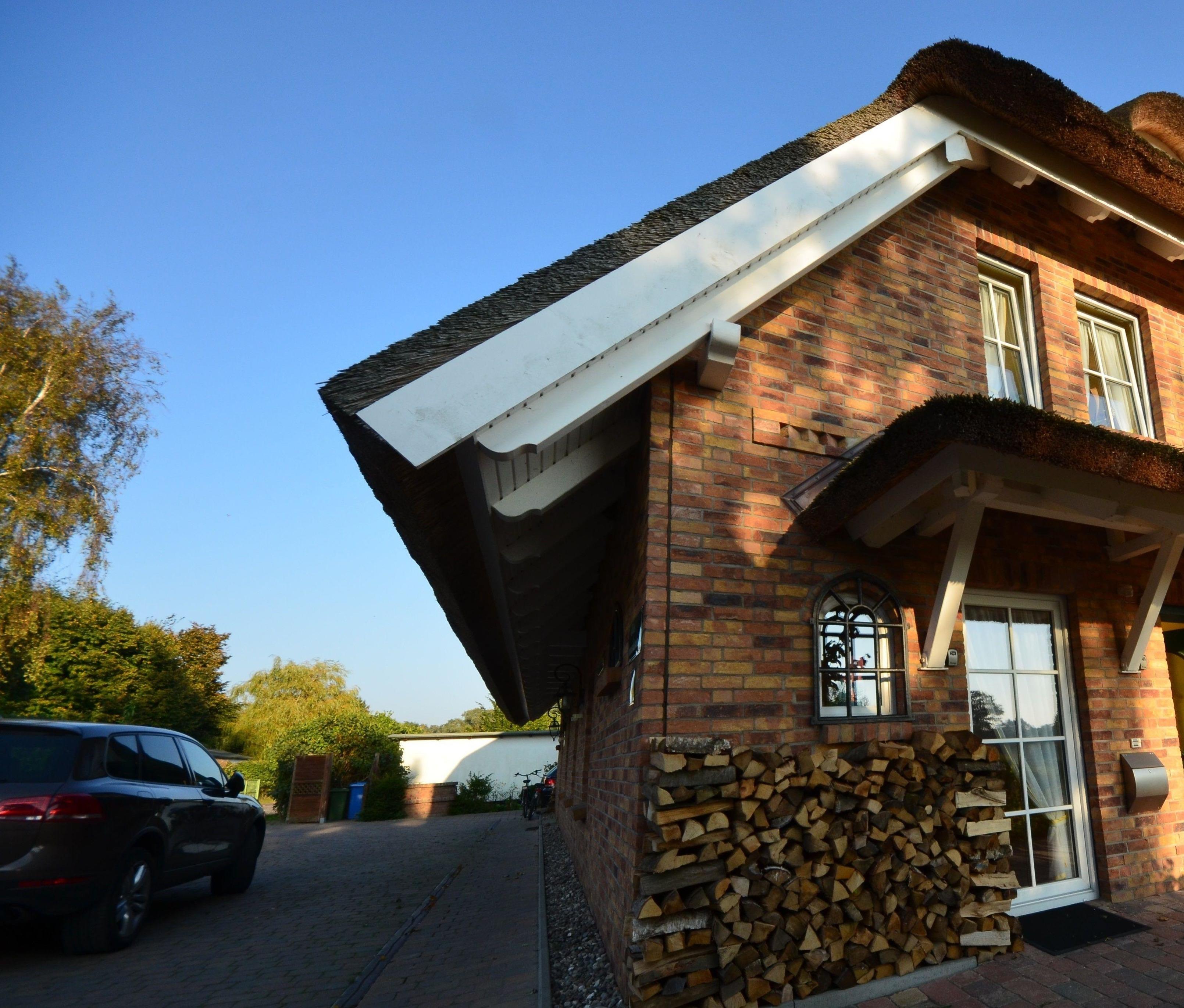 Die reetgedeckte und verklinkerte Doppelhaushälfte liegt in der erste Reihe mit