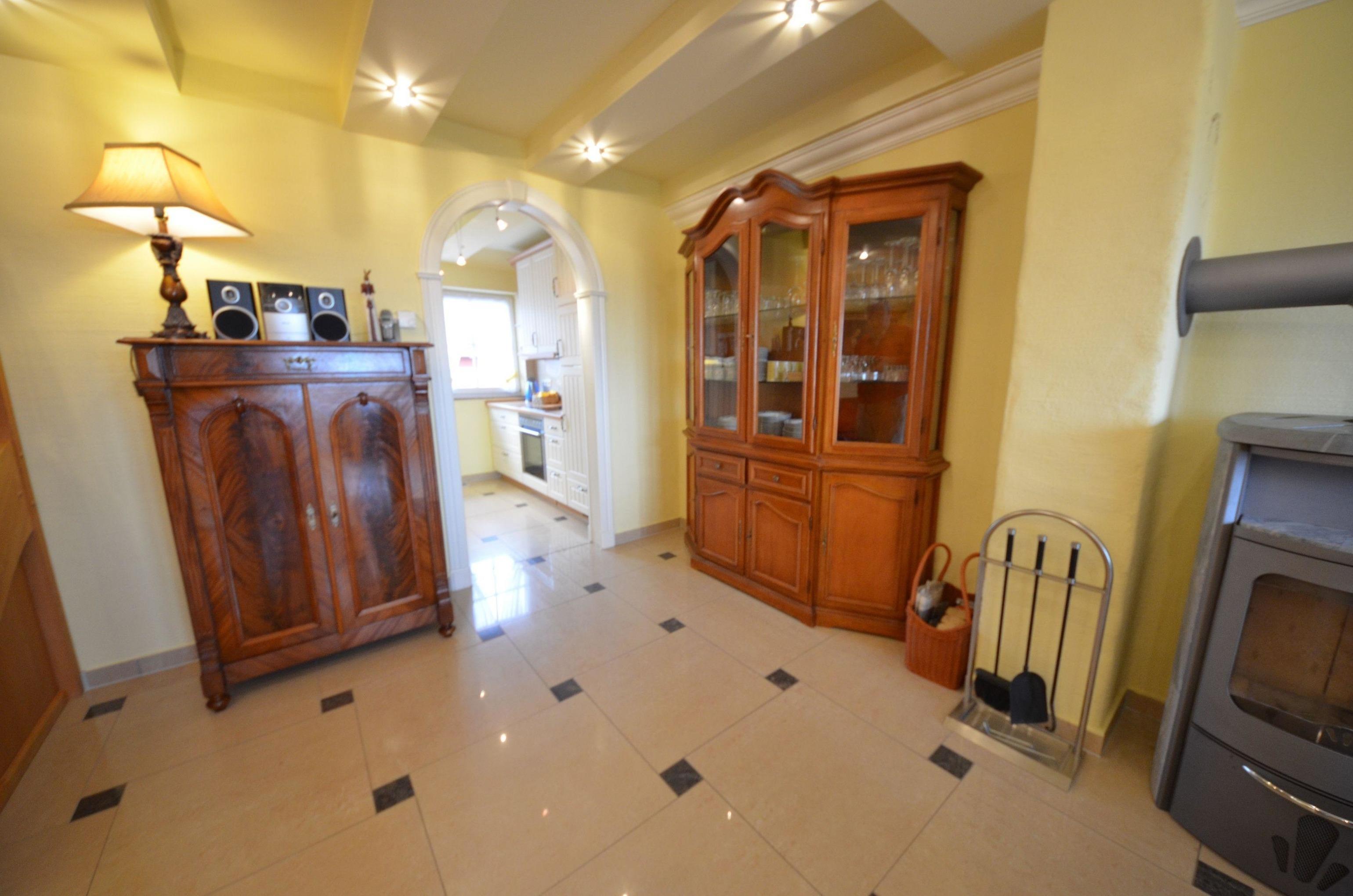 Vom Wohnzimmer aus durch eine schöne Holztreppe ins Dachgeschoß: