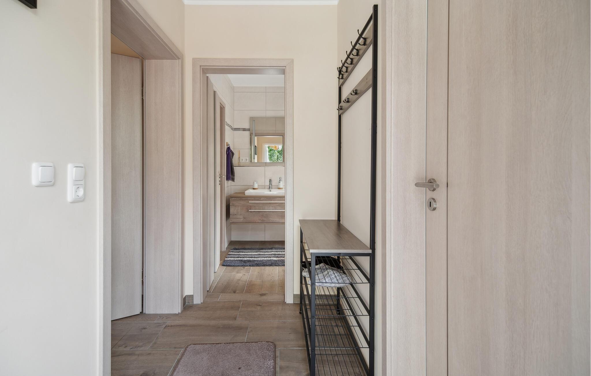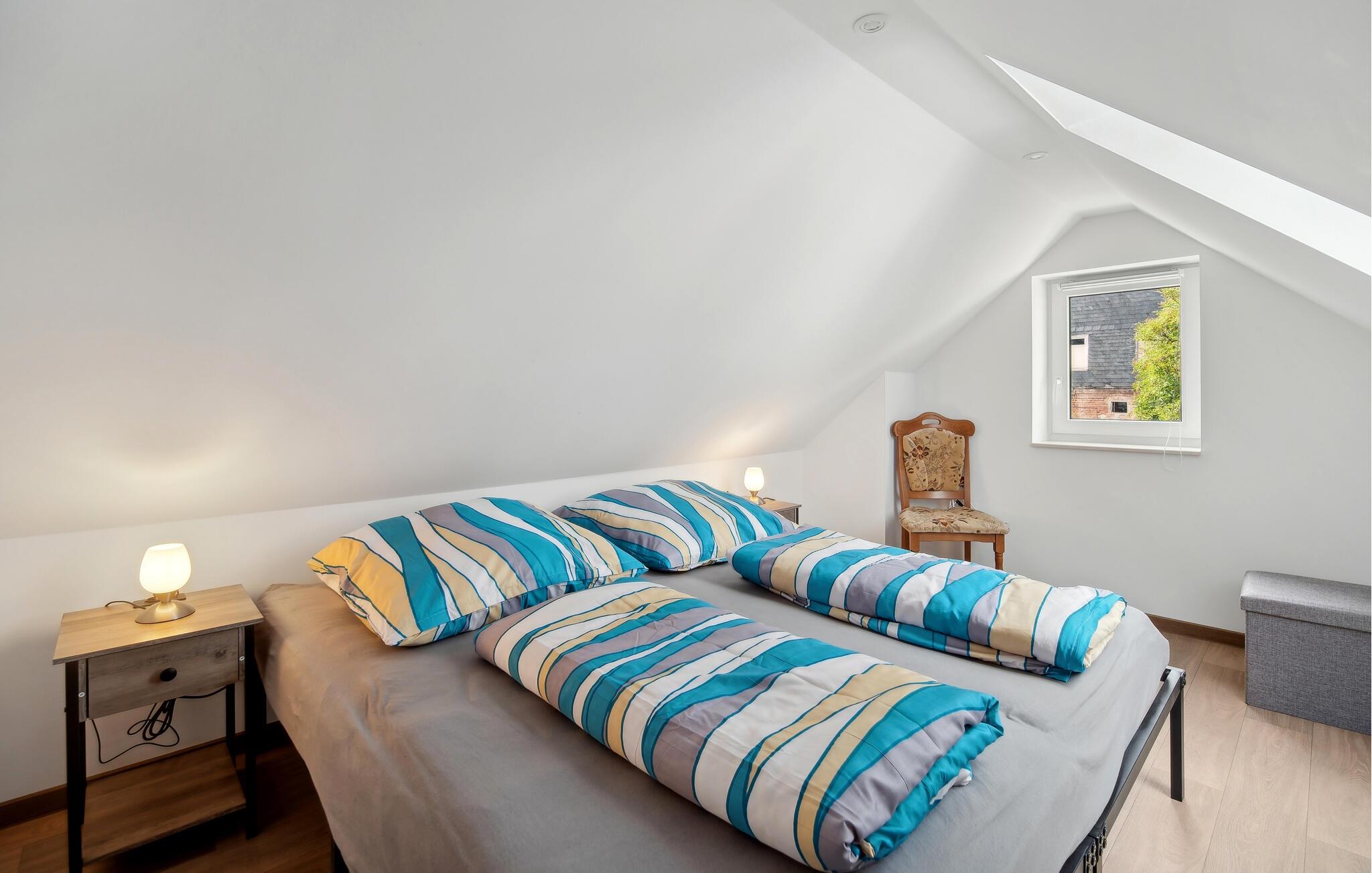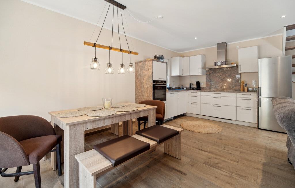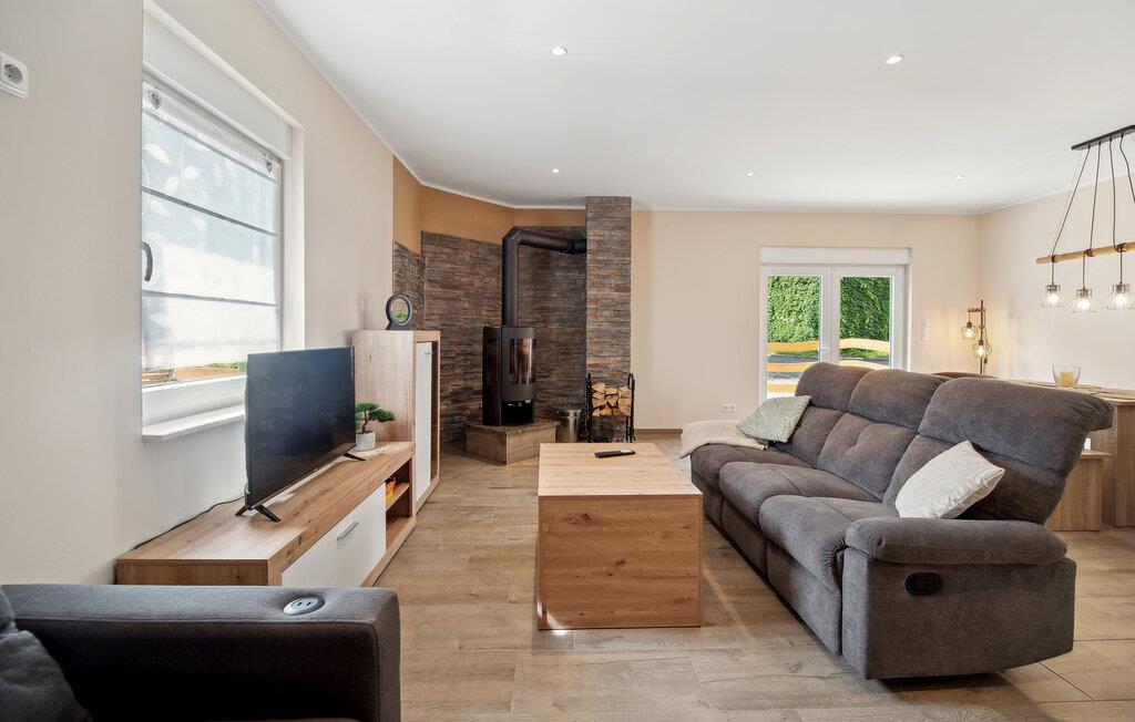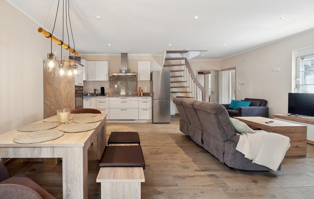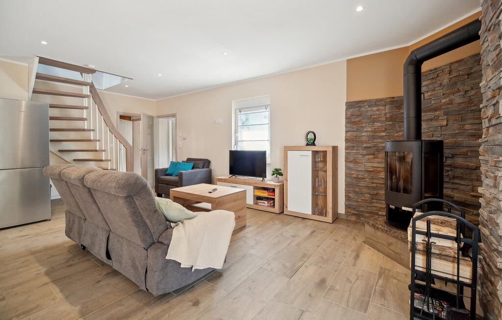 Velkommen til huset, der venter på jer på en ideel beliggenhed til en afslappende ferie i idylliske omgivelser. Med sine hjemlige møbler og diskrete farver er det det perfekte sted at slappe af. Efter jeres aktiviteter inviterer stuen jer til at sidde komfortabelt sammen i lang tid og lægge planer for den næste dag. Skab en særlig hyggelig atmosfære med ild i pejsen.