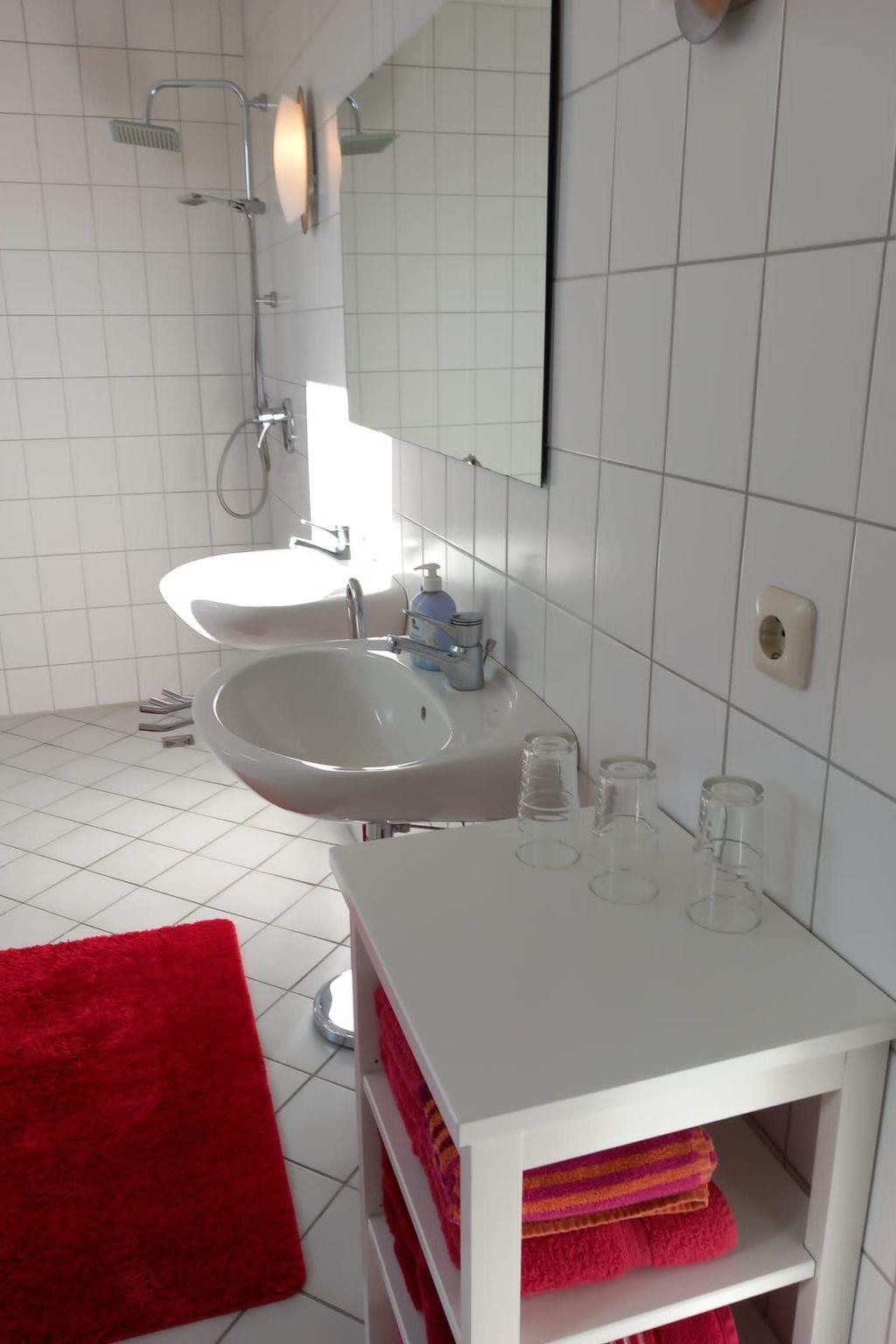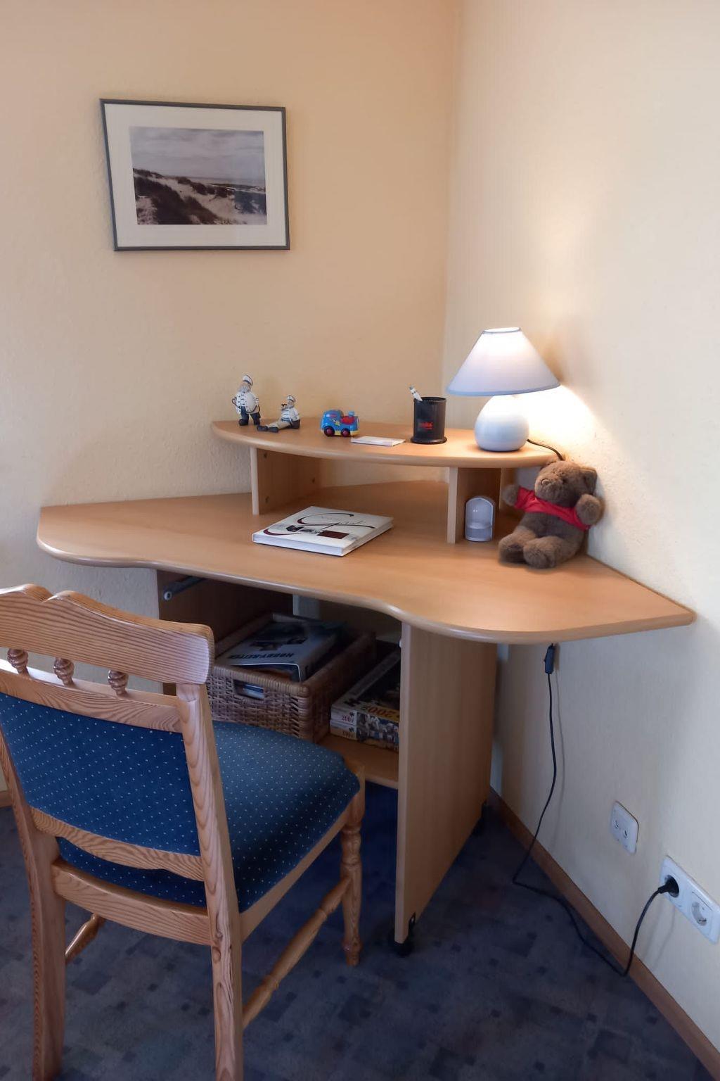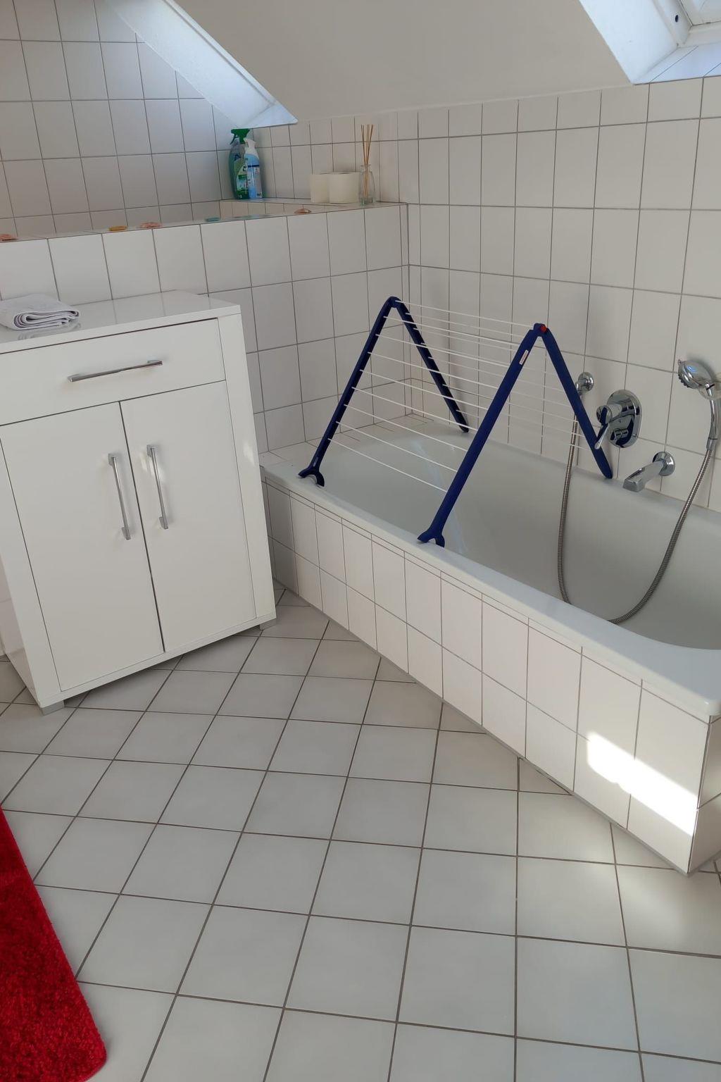 The interior reflects the loving restoration of the Gulfhof from 1949. The original beamed structures emphasise the antique charm, while the modern layout, including an open-plan living, kitchen and dining area, leaves nothing to be desired in terms of comfort. The kitchen area is fully equipped with hob, microwave, oven, coffee machine, toaster and kettle. Two stylishly furnished bedrooms with double beds and an extensively equipped bathroom ensure a cosy atmosphere.