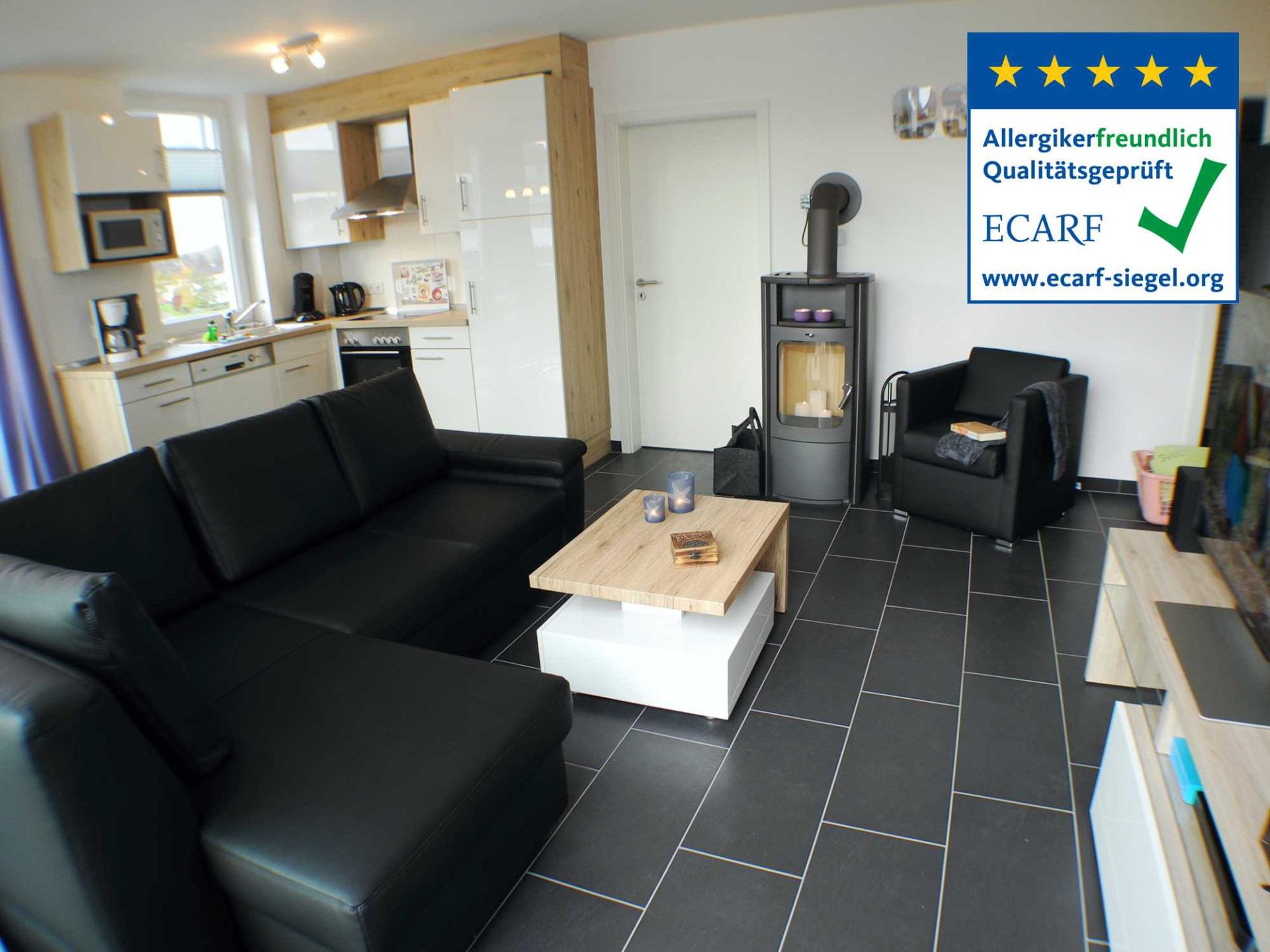 Dieses Feriendomizil ist von der ECARF als allergikerfreundlich zertifiziert worden. Wir bieten Ihnen eine rauch- und haustierfreie Unterkunft mit teppichfreien Böden oder kurzflorigen Bodenbelägen. Wir stellen Ihnen zur Milbenreduktion Schutzbezüge für Matratzen, Bettdecken und Kopfkissen zur Verfügung. Unser Staubsauger verfügt über einen speziellen Filter.