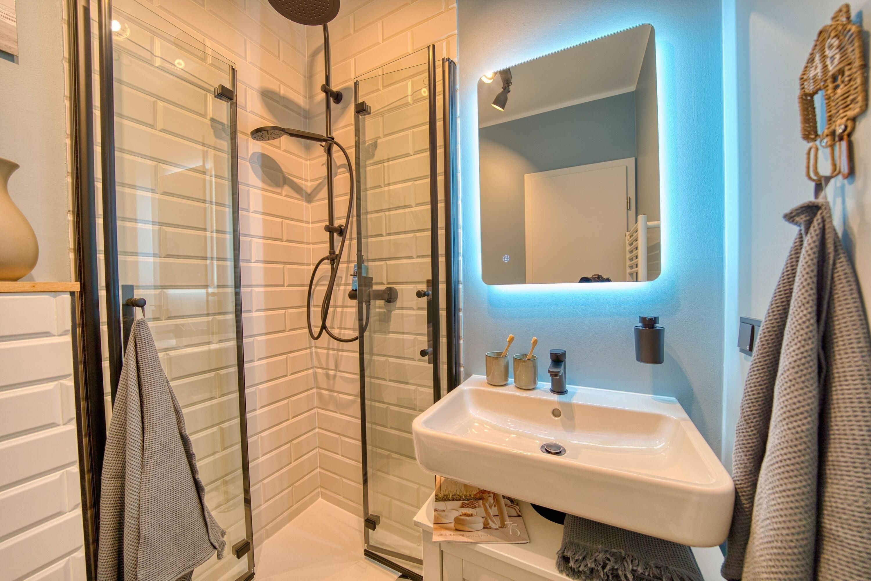 Modernes Duschbad mit frischer Ausstattung
