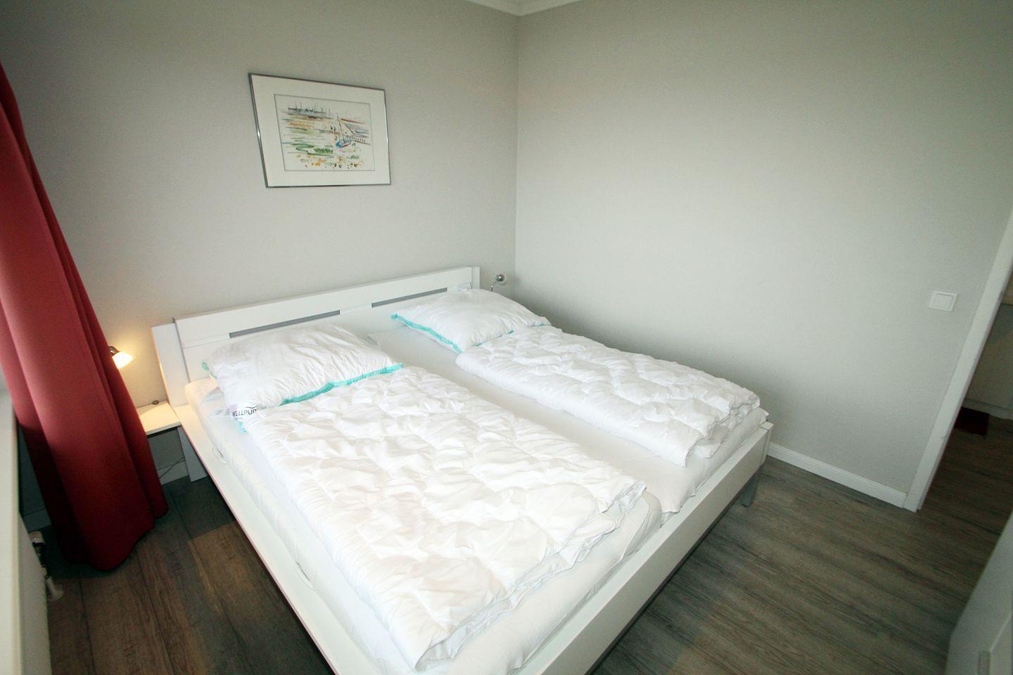Im Schlafzimmer sorgen ein großes Doppelbett (2*80*200), Verdunklungsgardinen, ein großer Kleiderschrank und ein zusätzlicher Flachbildfernseher für kuschelige Abende und entspannte Nächte.