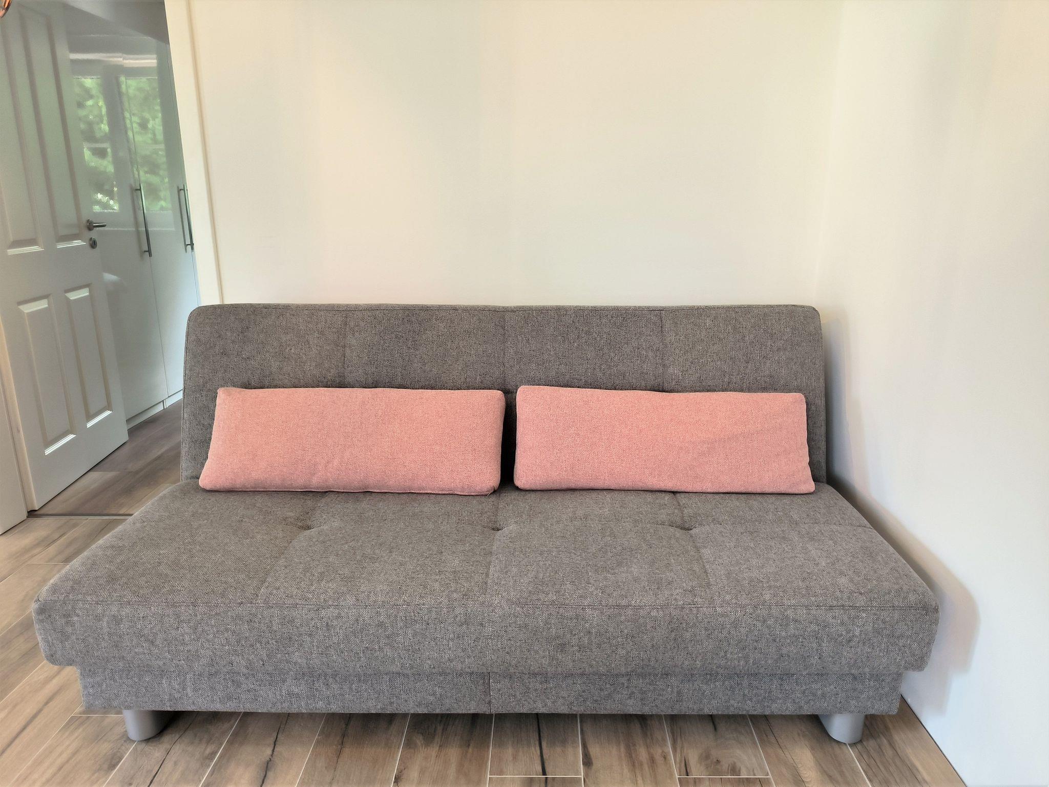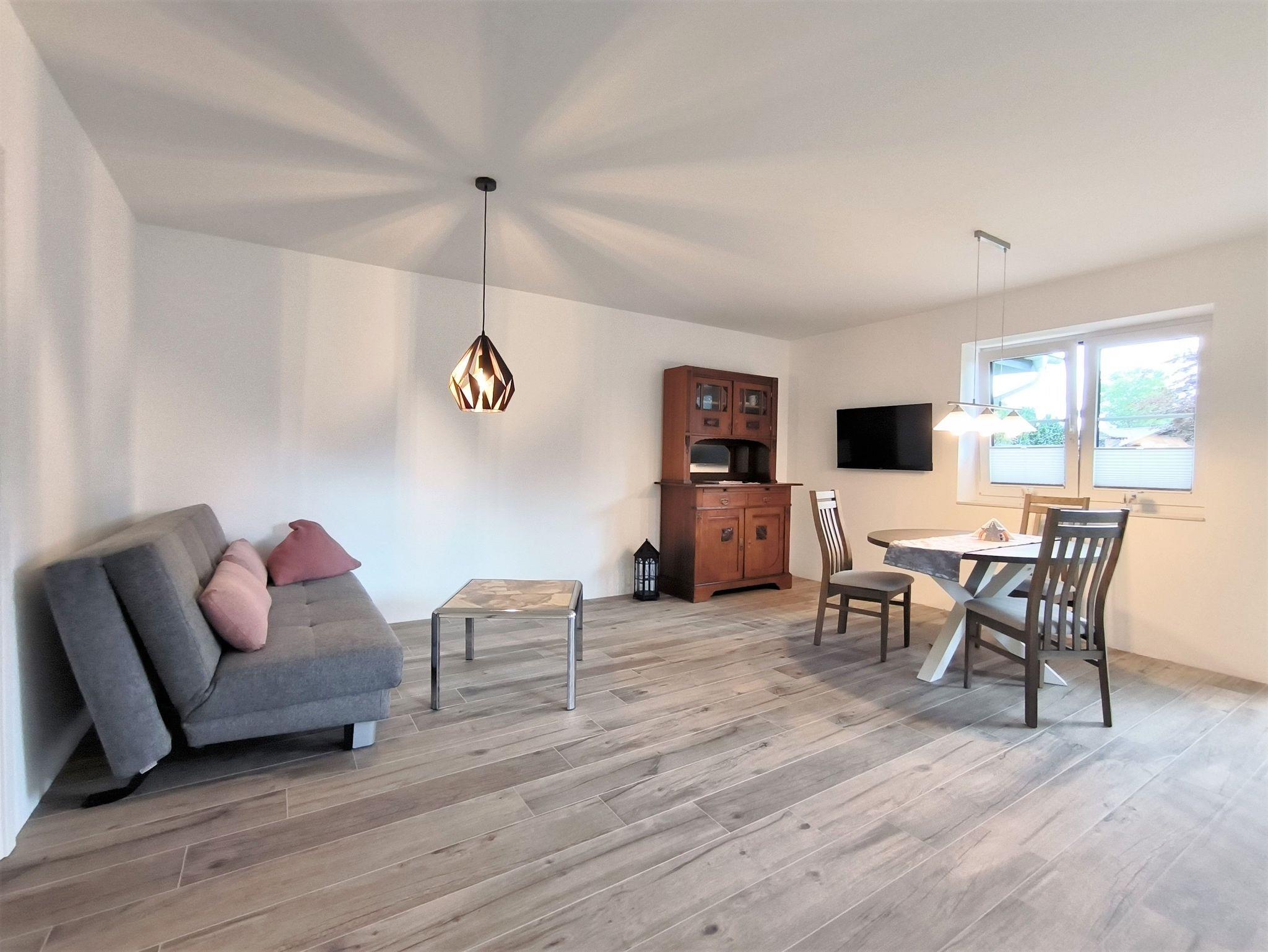 Die Wohnung Grünberg ist 52qm groß und hat ein Schlafzimmer mit Doppelbett, ein modernes Bad mit ebenerdiger Dusche und einen großen Wohn- und Essbereich mit gut ausgestatteter Küchenzeile. Sie ist buchbar für zwei oder drei Personen (ein Schlafplatz ist das hochwertige Schlafsofa im Wohn- und Esszimmer).